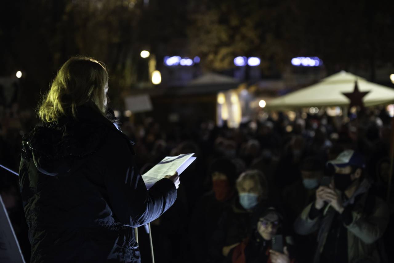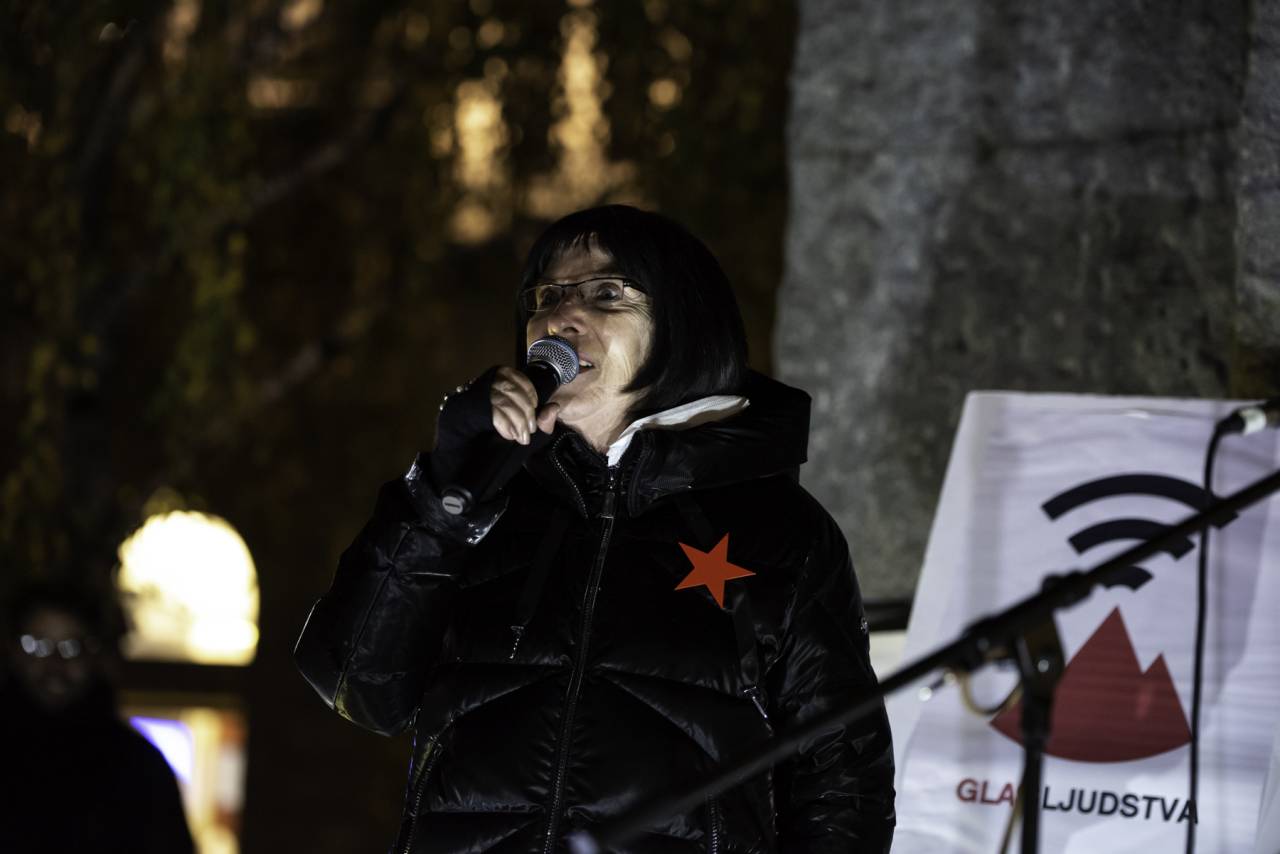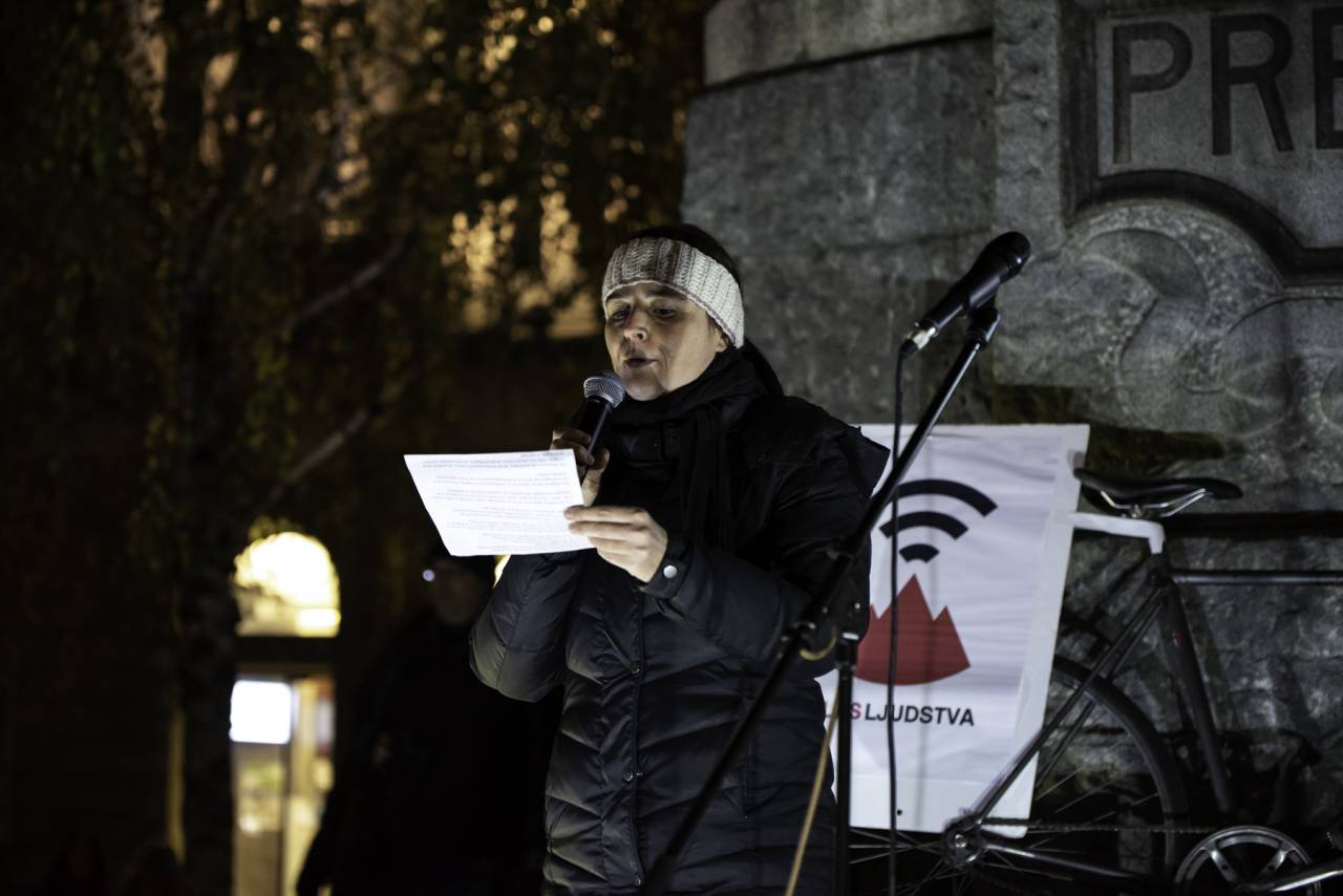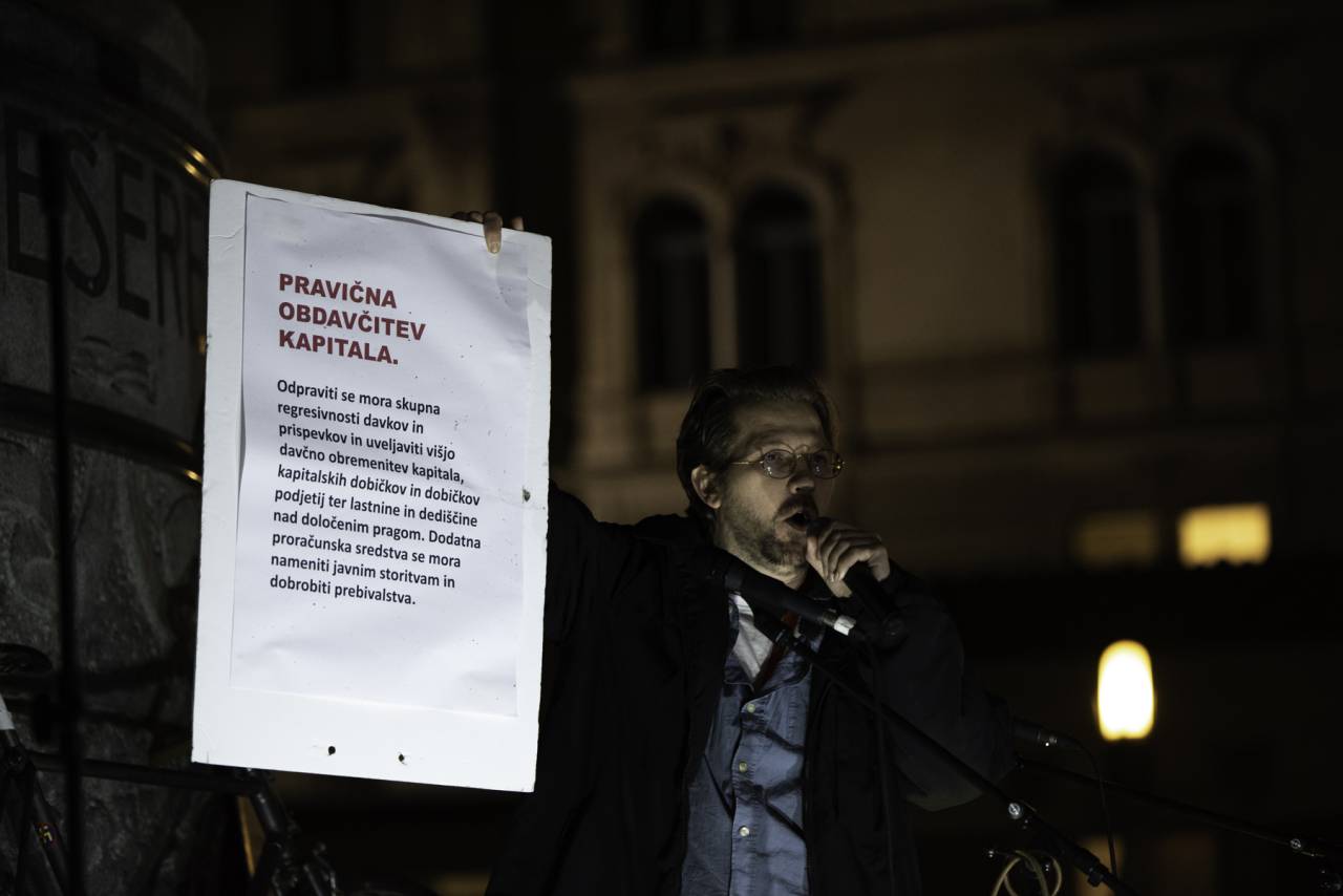 Oglasila se je tudi aktivistka Tea Jarc in dejala: »Hočemo politiko, ki pravično obdavči kapital, ne pa politiko, ki javni denar porablja za nakup orožja. Po podatkih iz leta 2019 je sistemska korupcija našo državo stala več kot tri milijarde evrov«.