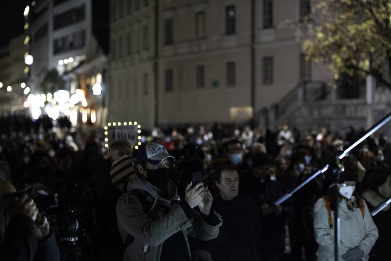 »Naša je kultura, vaša je diktatura. Če vlada ne pade, država propade« pojejo na protestu. Shod poteka mirno.