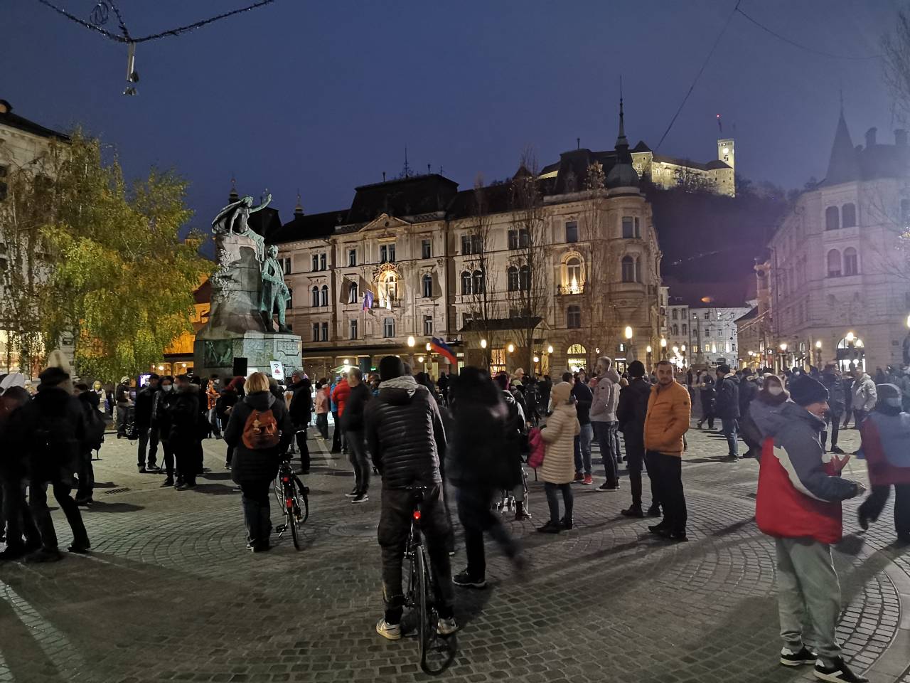 Protest se je začel ob 17. uri na Prešernovem trgu, govorci pa so takoj pozvali k upoštevanju varnostne razdalje in uporabi zaščitnih mask. Policisti so protestnike opozorili, da shod ni prijavljen, sledili pa so številni žvižgi.
