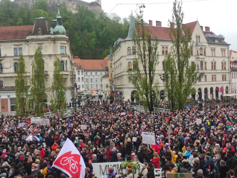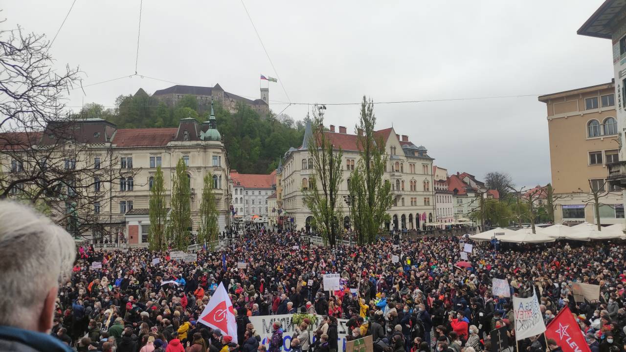 Več tisoč glava množica, je zasedla Prešernov trg, se sprehodila po Ljubljani mimo predsedniške palače in na koncu na Trgu republike skupaj zapela Zdravljico.