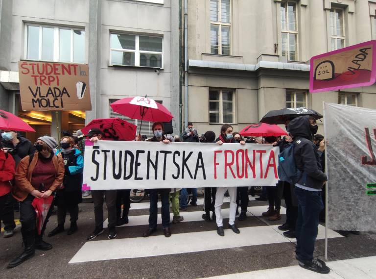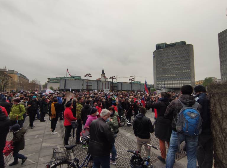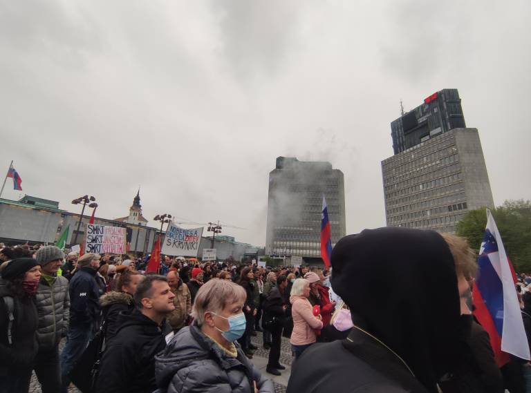 Ob dnevu upora proti okupatorju, so se v Ljubljani zbrali protestniki.