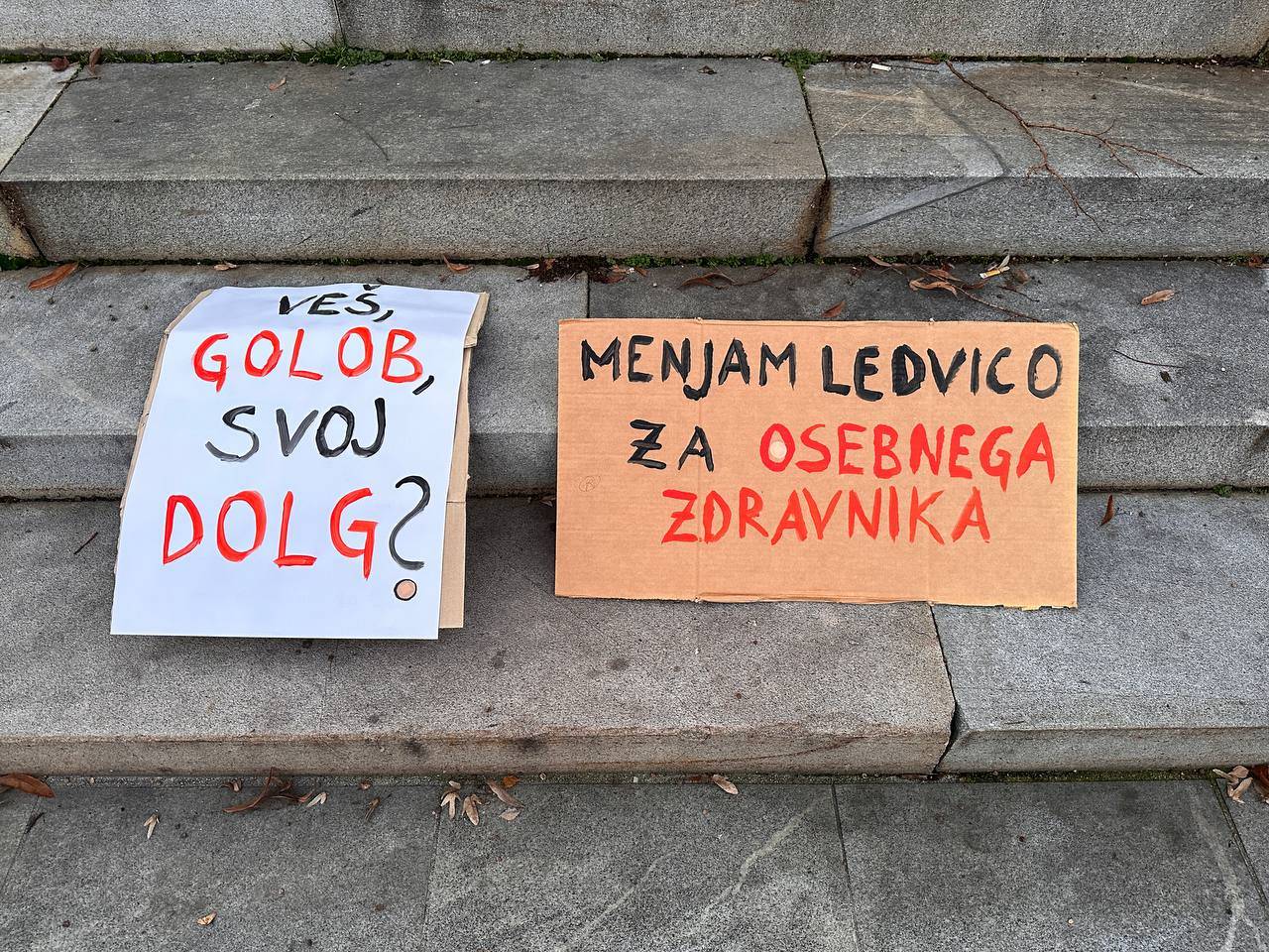 »Izkušnje imam tako z javnim zdravstvom kot s koncesionarji, pri slednjih so te slabe. Na primer, po operaciji očesa pri koncesionarju, sem po tednu dni začutila bolečine v očesu. Poklicala sem operaterja, da bi pogledal oko. Povedal mi je: 'Ne, kar na očesno kliniko pojdite.' 'Ampak vi ste operirali oko,' mu povem, mi odvrne: 'Ja, mi smo opravili storitev, zdaj pa naprej v javno zdravstvo',« je poudarila ena izmed pacientk na stavki.
