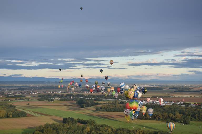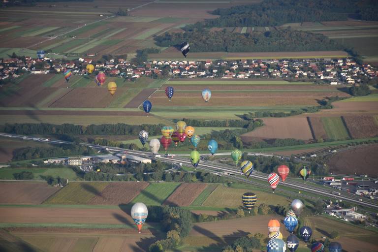 Čez nekaj trenutkov že letimo nad prekmursko ravnico. V družbi tekmovalnih balonarjev se dvignemo vse do 1100 metrov višine.