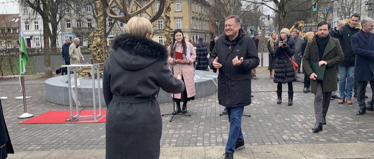 Kip v spomin Ferdinandu Avguštinu Hallersteinu je pripotoval »preko tisočerih gora in voda« vse do Slovenije ravno štiri dni pred kitajskim novim letom, ki bo leto zmaja. Ob tej priložnosti je veleposlanik vsem voščil srečno kitajsko novo leto.