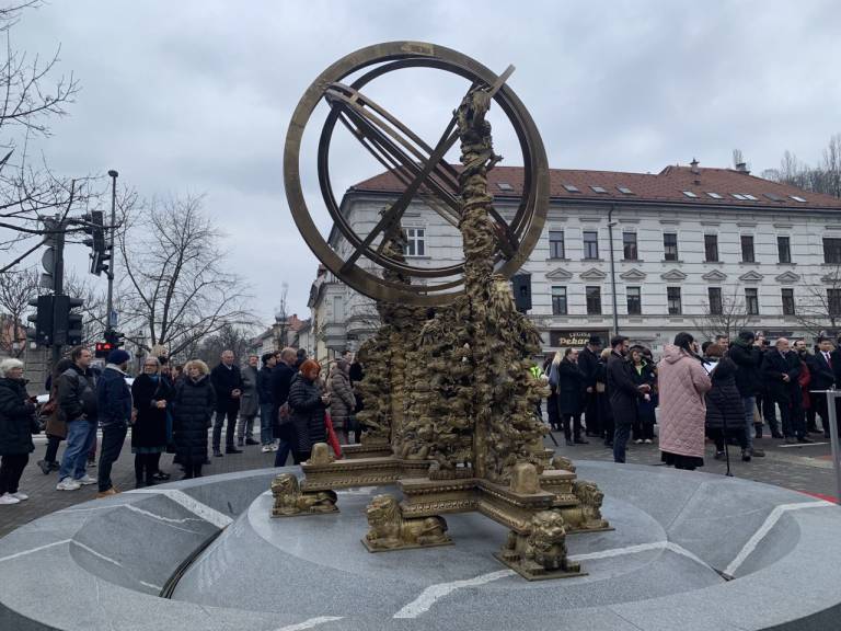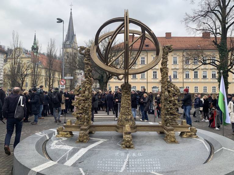 Na izteku Grudnovega nabrežja ob Šentjakobskem mostu je danes potekala slovesnost ob odkritju replike zvezdnega opazovalnika, ki ga je sredi 18. stoletja na kitajskem dvoru izdelal slovenski jezuit, astronom, matematik, kartograf in diplomat Ferdinand Avguštin Hallerstein.