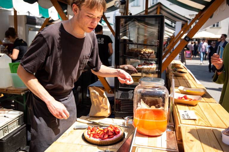 Zaradi slabe vremenske napovedi je prejšnji petek Odprta kuhna bila odpovedana. Aprilsko vreme pa ta teden ni zagodlo organizatorjem gurmanske tržnice, ki z omamno ponudbo vabi obiskovalce k okušanju hrane.