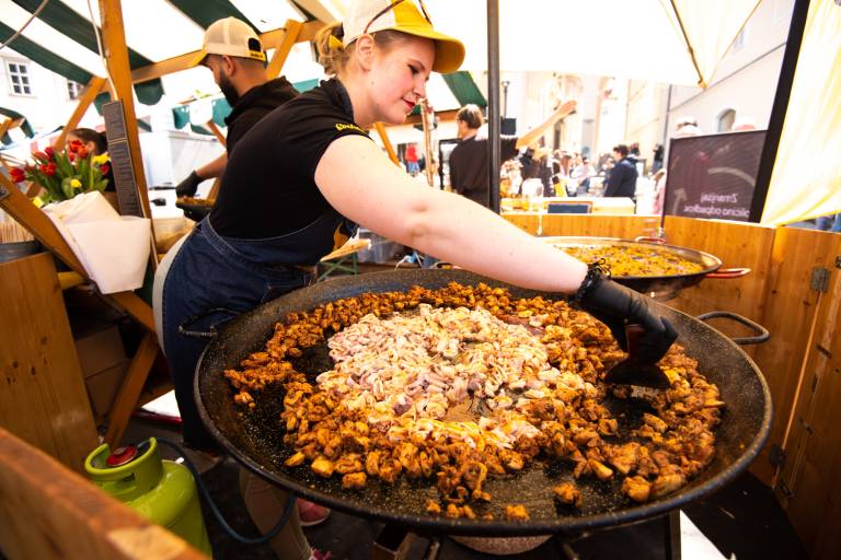 Odprta kuhna je danes na Pogačarjevem trgu in dogajanje je živahno.