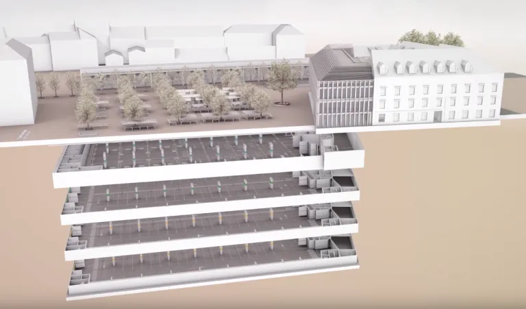 Pod osrednjim delom, pod zemljo, bo urejena sodobna servisna etaža: hladilnice, skladišča, prostori za odpadke, ureditev za dostavo in odvoz blaga. Tu bo tudi garaža za parkiranje. Dostava ne bo več potekala po površju tržnice, kar pomeni manj hrupa, manj logističnega kaosa in več prostora za obiskovalce.