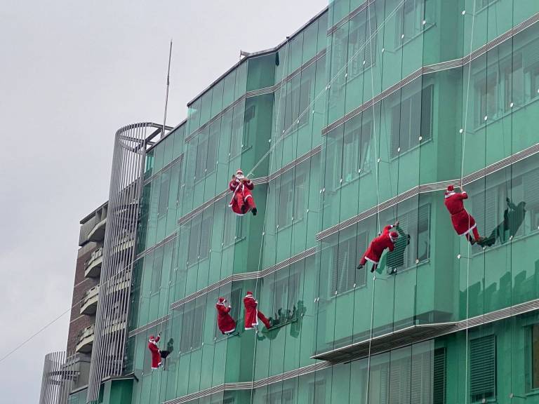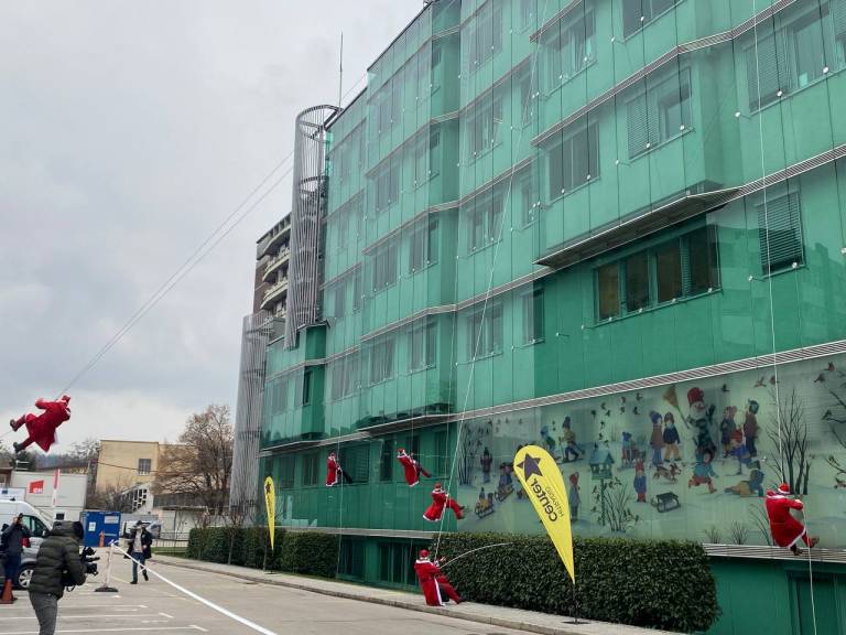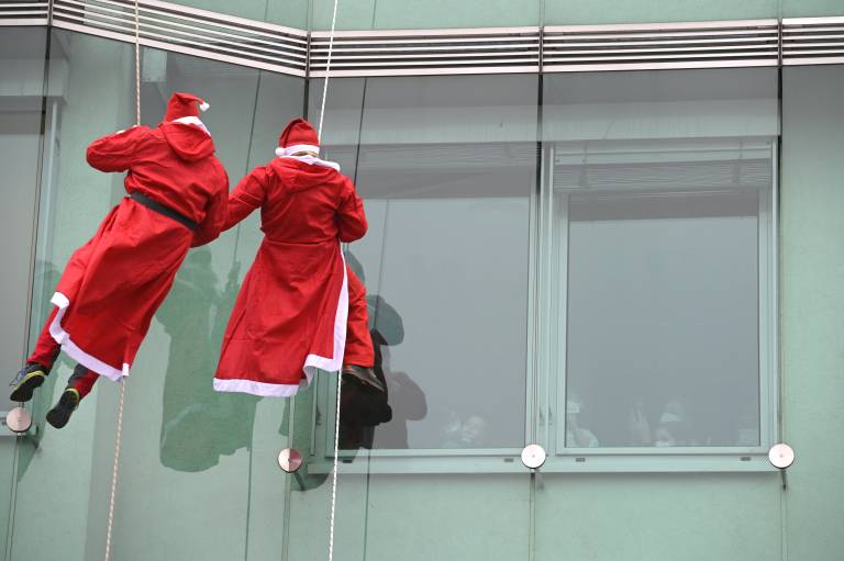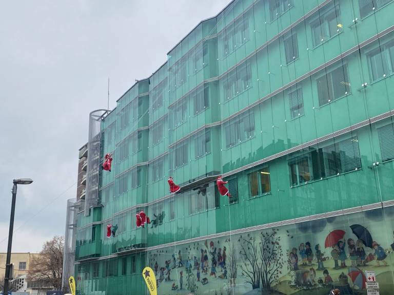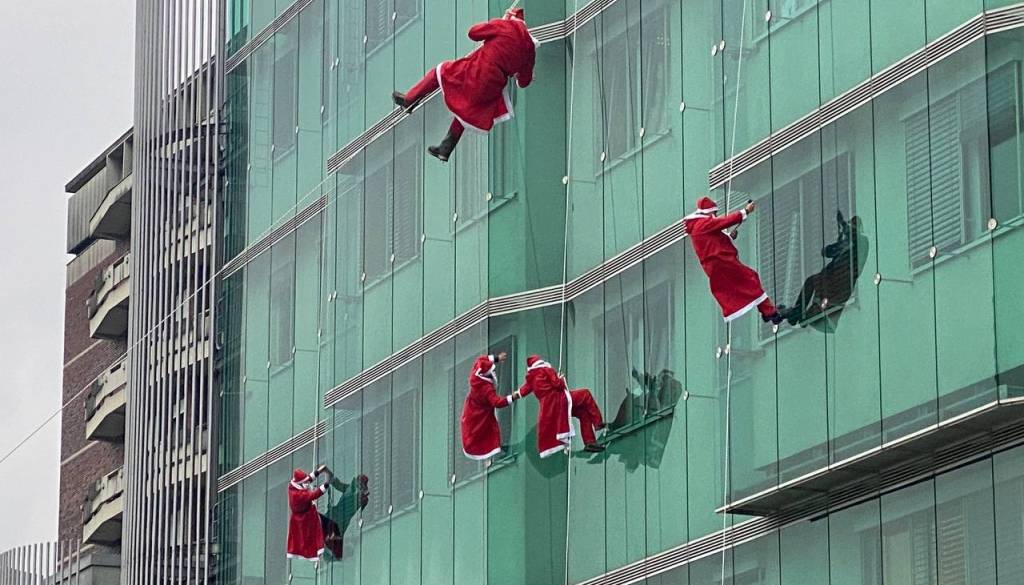 Božički so se s strehe ljubljanske pediatrične klinike spustili že devetič.