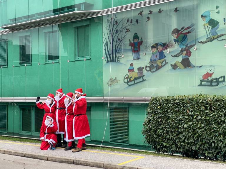 Toda vsaj en dan v decembru prešerno praznično vzdušje obišče tudi male bolnike. Hitradio Center namreč vsako leto organizira tradicionalen spust božičkov s streh slovenskih otroških bolnišnic.