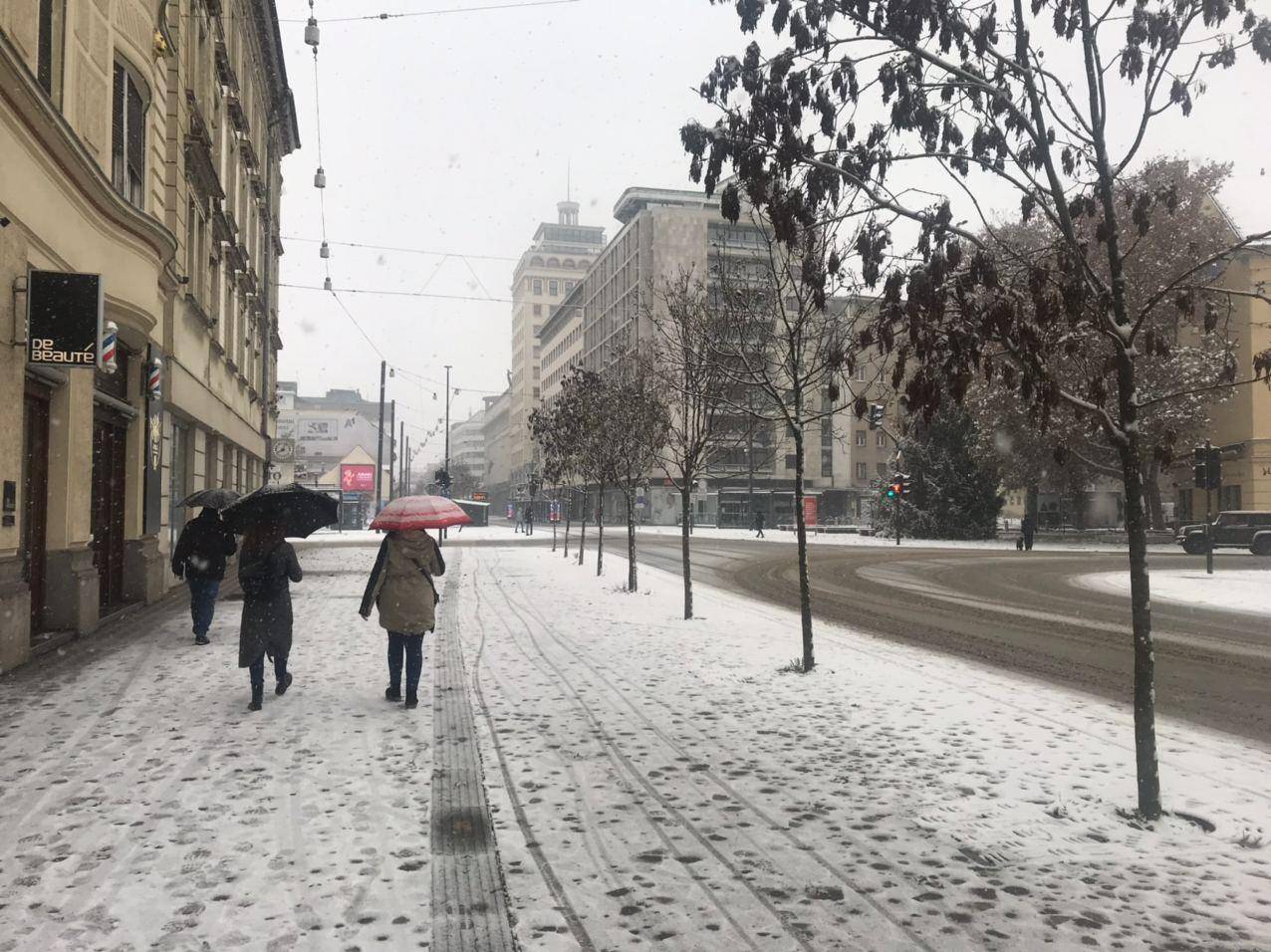 Le še vprašanje časa je bilo, kdaj se bo nizkim temperaturam pridružil še sneg. Mi smo se sprehodili po centru mesta in v objektiv ujeli prve snežene trenutke.