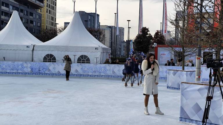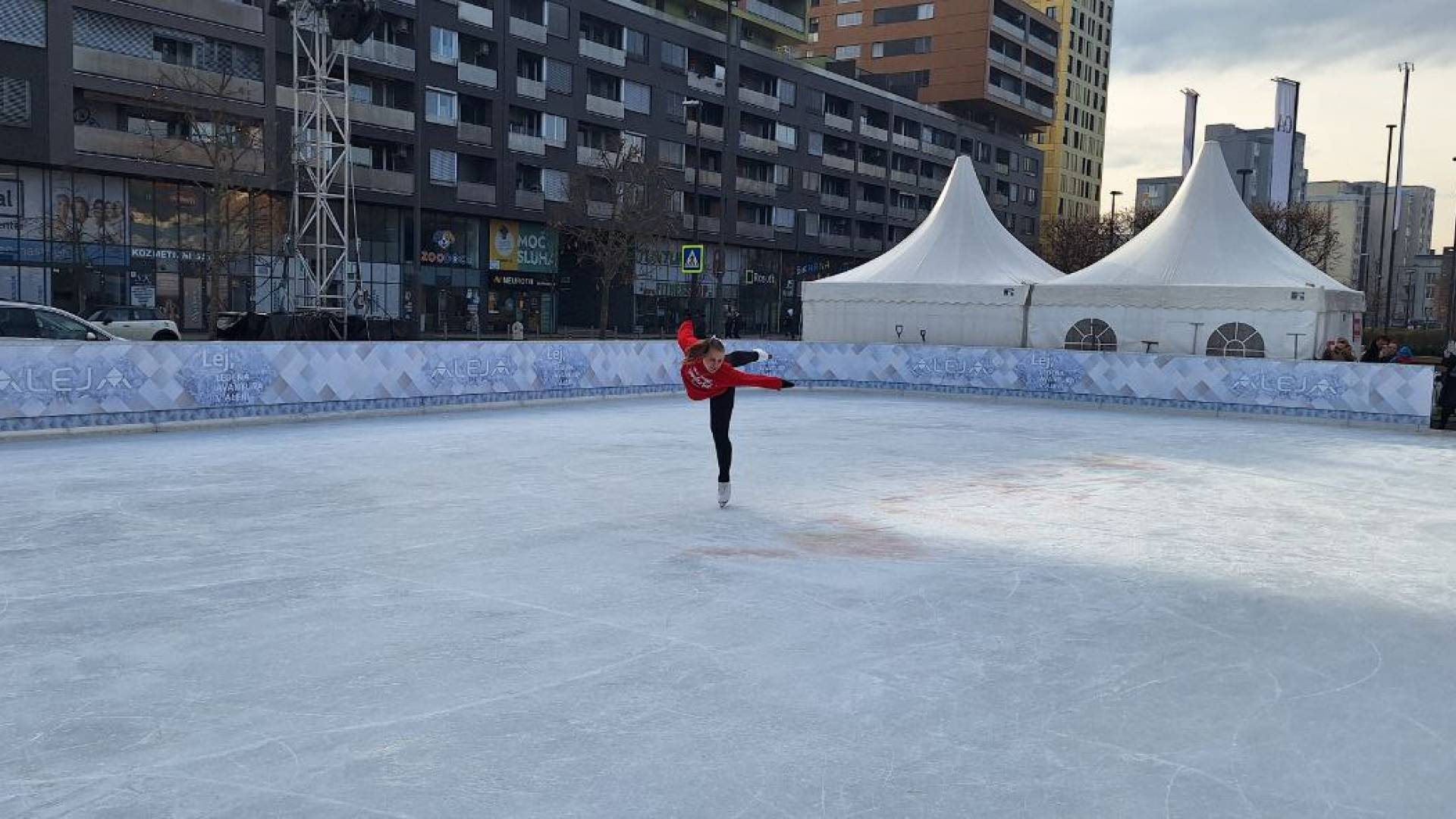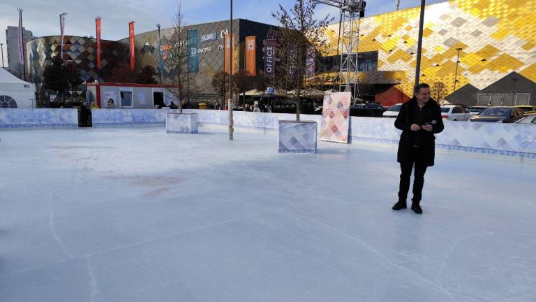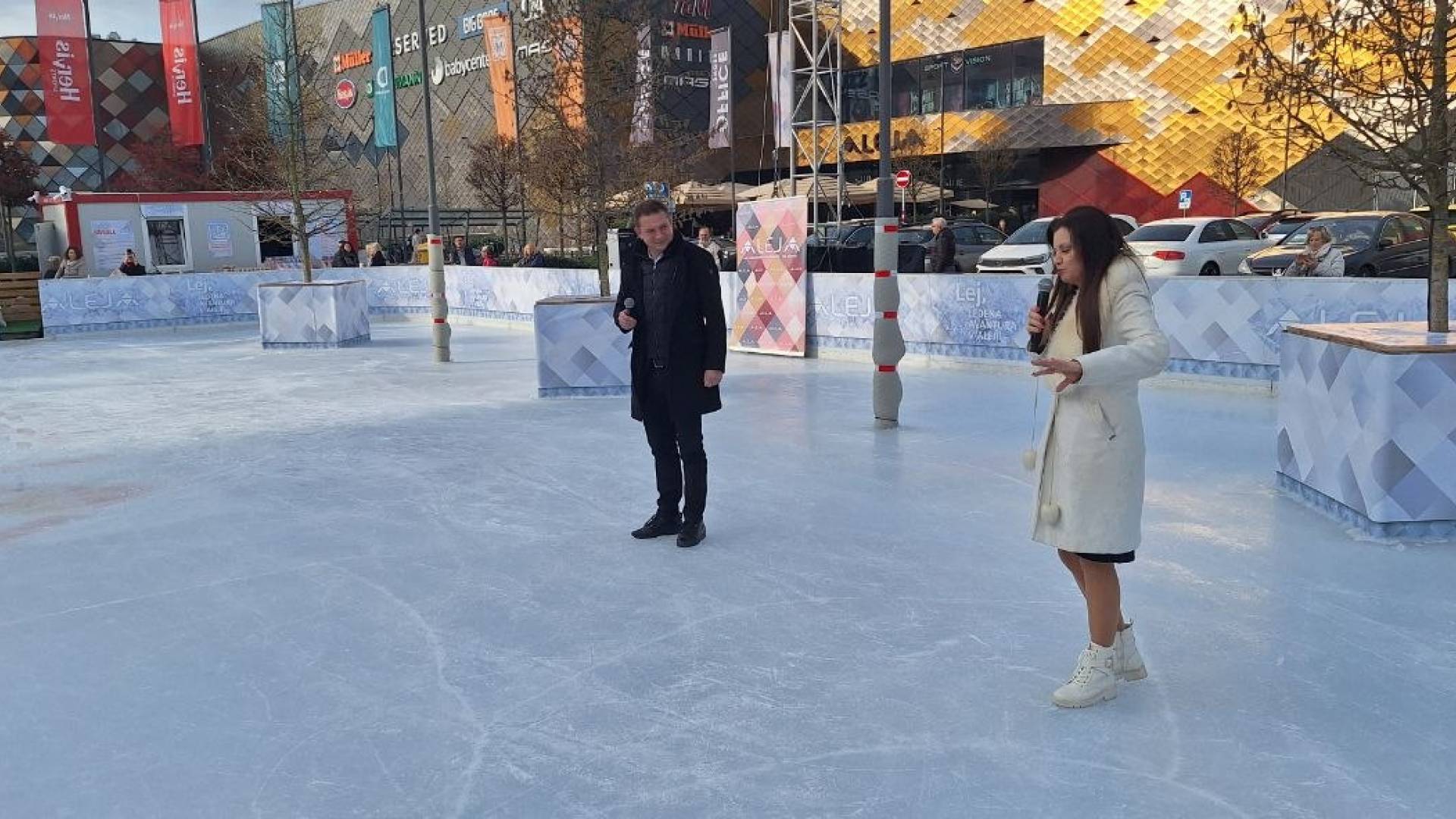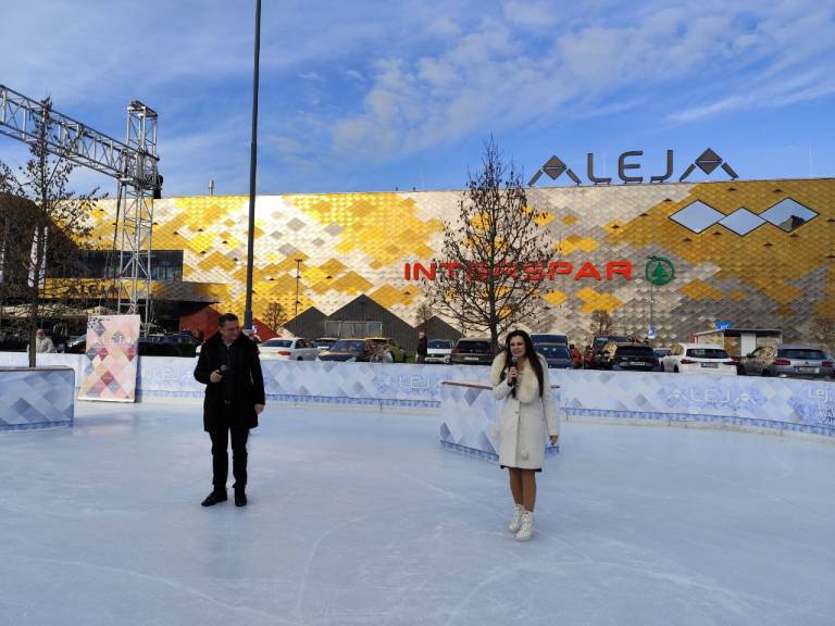 V nakupovalnem centru Aleja v Šiški so danes uradno odprli prvo in trenutno edino drsališče na prostem v Ljubljani, ki se letos nahaja na zunanjem parkirišču pred centrom.