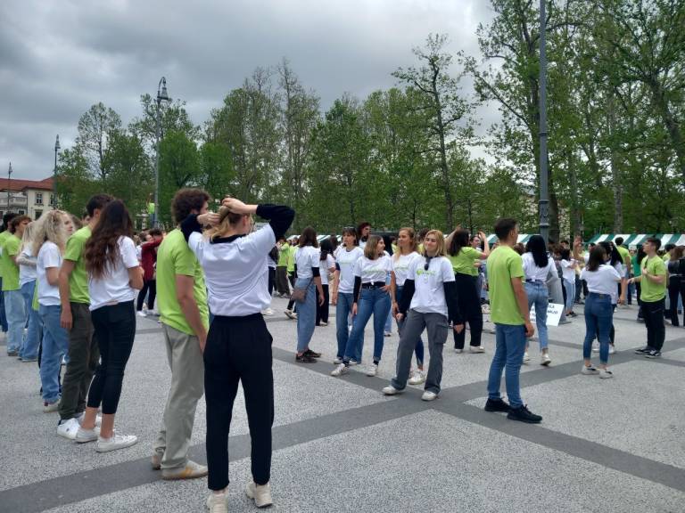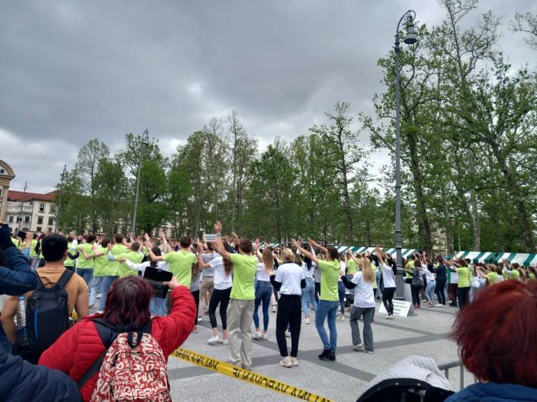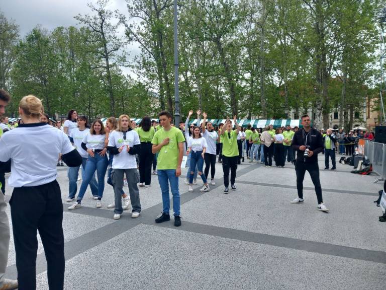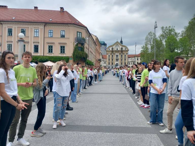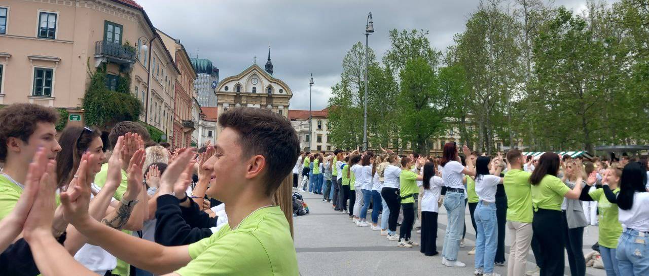 Natanko ob 12.00 so ljubljanski maturanti v središču mesta, vzdolž Kongresnega trga, zaplesali tradicionalno ulično četvorko, s katero so se simbolično poslovili od srednješolskih klopi.
