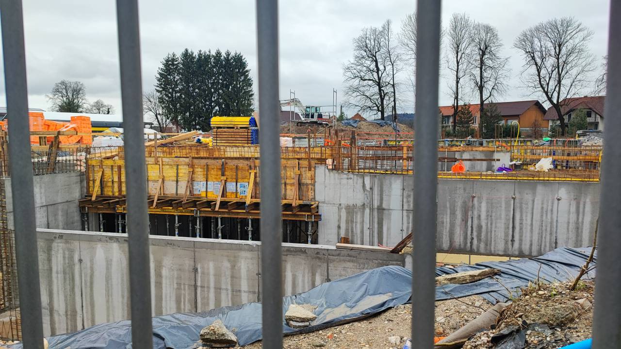 Klet nastajajoče vile v Zadobrovi, je razvidno na terenu, izgleda precej obsežno. Po naši oceni vsebuje tudi večji garažni prostor, kar naznanja velika odprtina za garažna vrata.