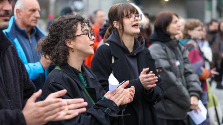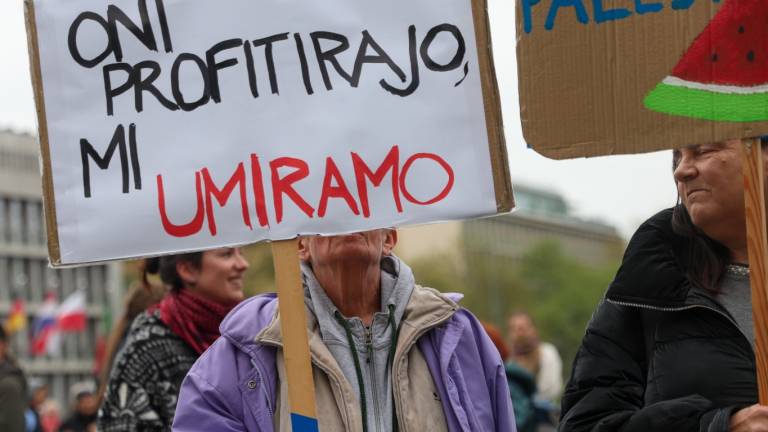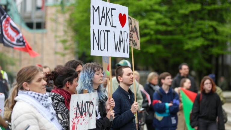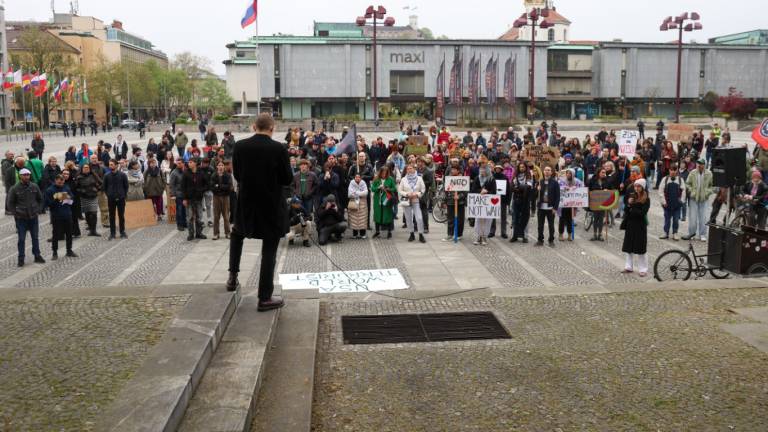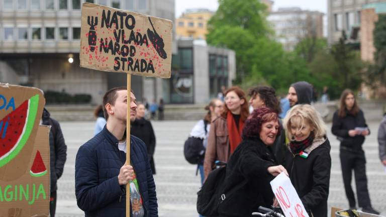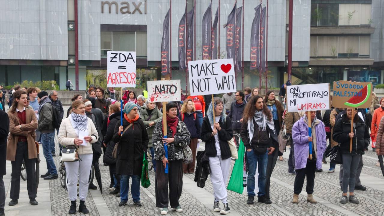 »Nočemo biti del vojaških zavezništev, ki prispevajo k nasilju po svetu,« je bilo slišati med zbranimi.