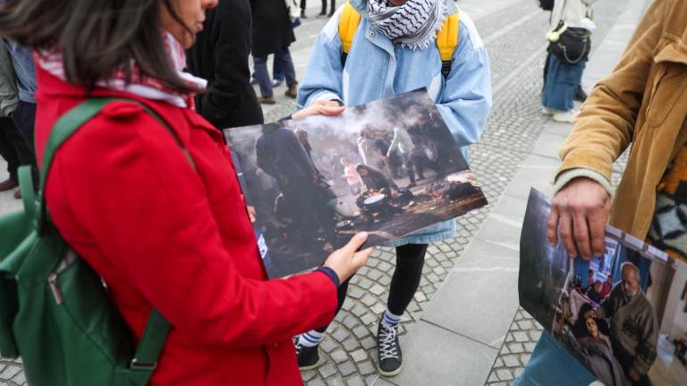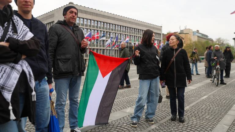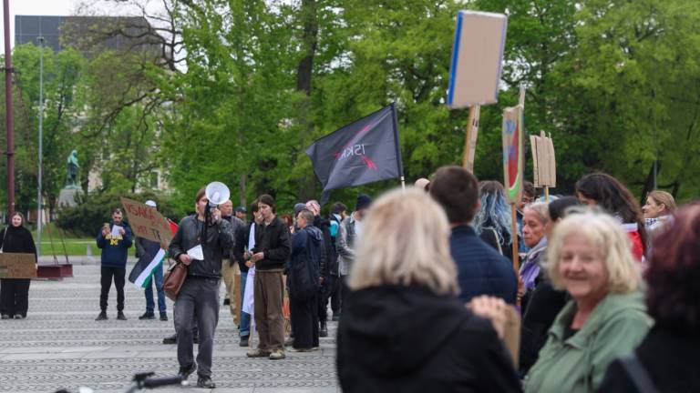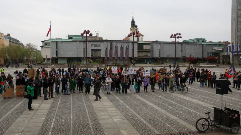 Na Trgu republike v Ljubljani se je v torek, ob 17. uri, zbralo več sto protestnikov, ki so pod geslom »Nočemo vaših vojn!« izrazili nasprotovanje genocidu v Gazi in vse večji militarizaciji.