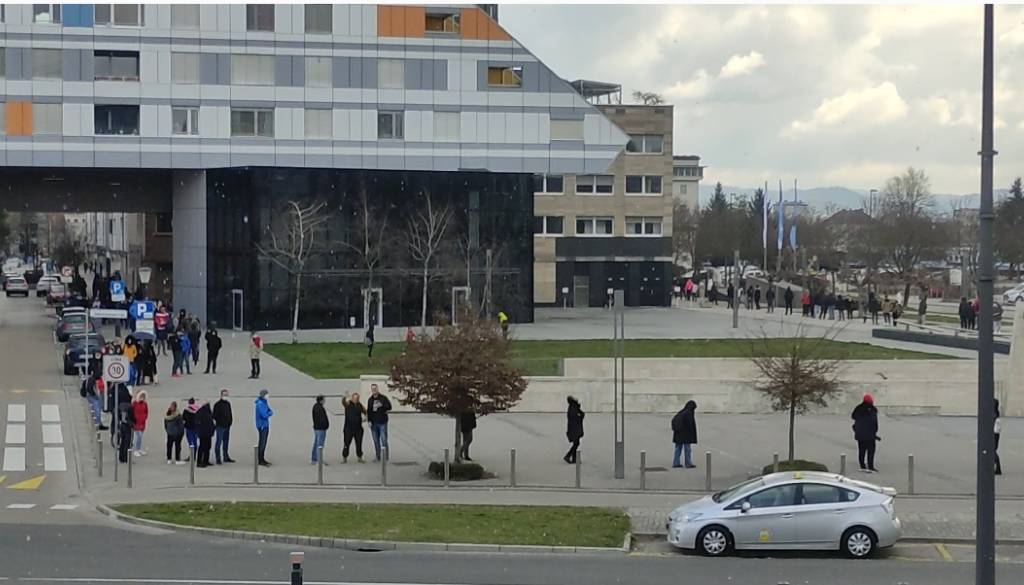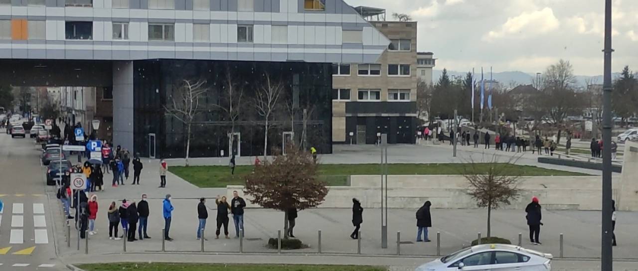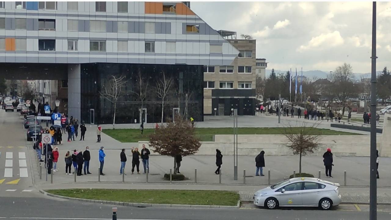 Množica namreč čaka na hitro testiranje v zasebnem zavodu Zdravje znanega kirurga Marka Bitenca.