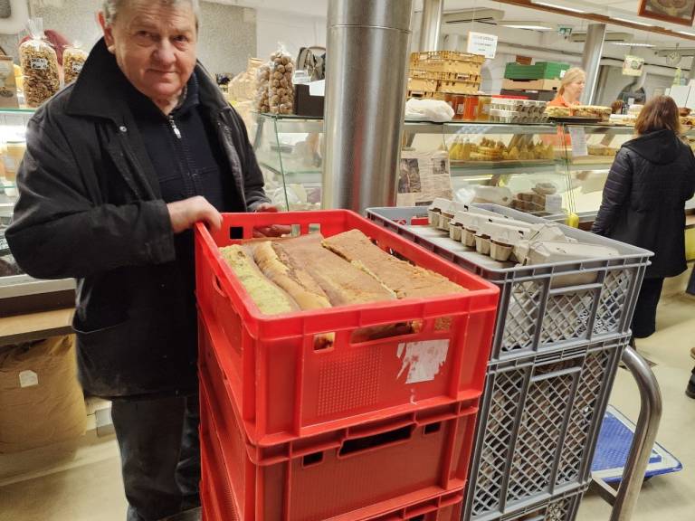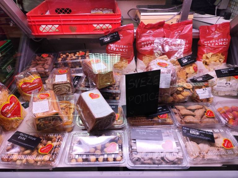 Nič manj živahno ni pri poticah. Vrste so dolge, prodajalci pa komaj dohajajo povpraševanje. Ena od prodajalk pove, da že ves teden prodajo precej več potic kot običajno – tudi do sto na dan – danes pa jih bodo verjetno še precej več.
