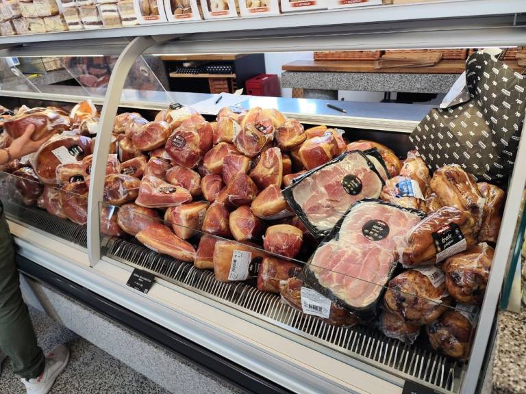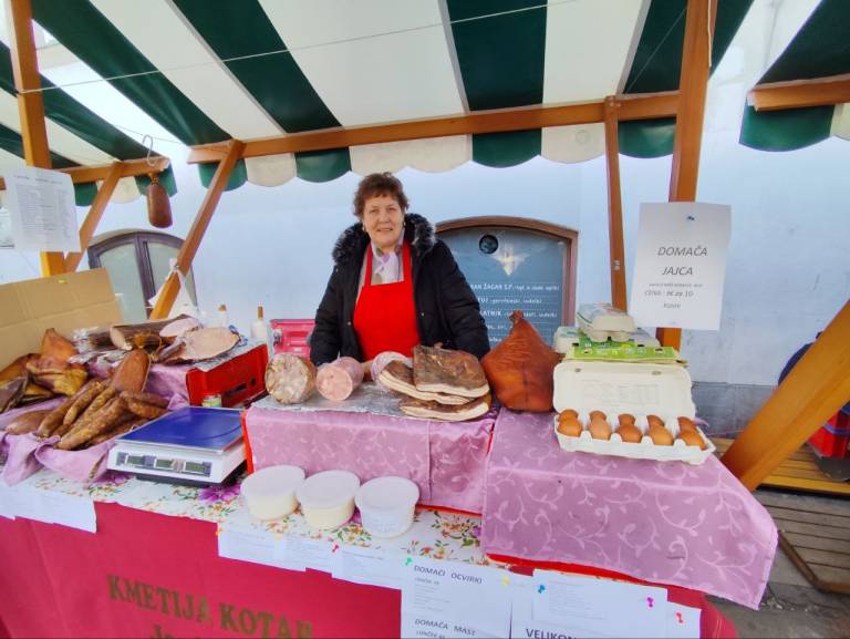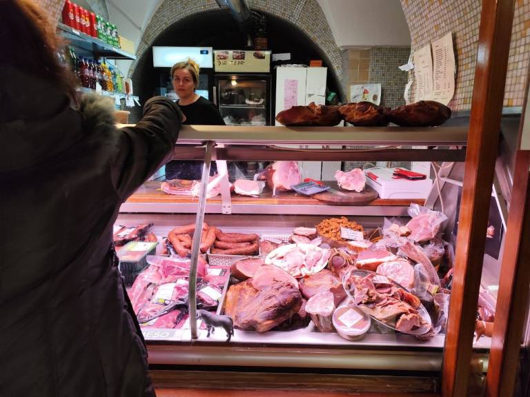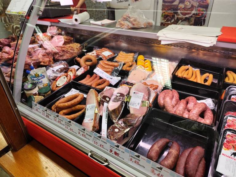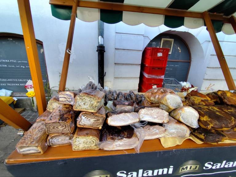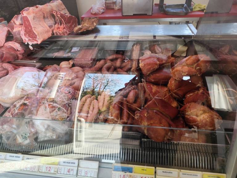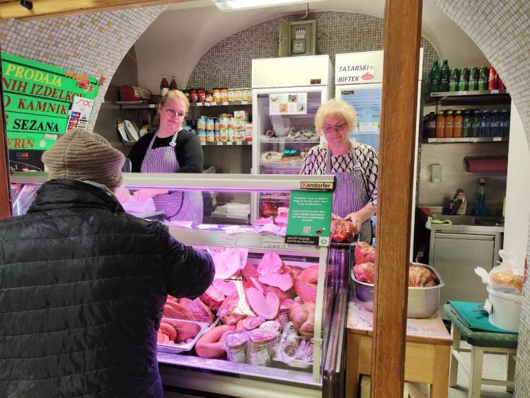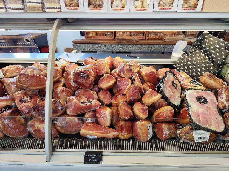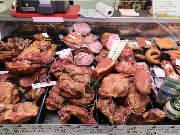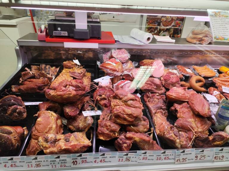 Poleg klasične svinjske letos dobro prodajajo tudi puranja, piščančja in goveja šunka, nam še pove prodajalka.