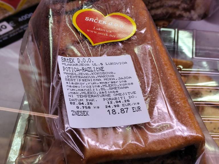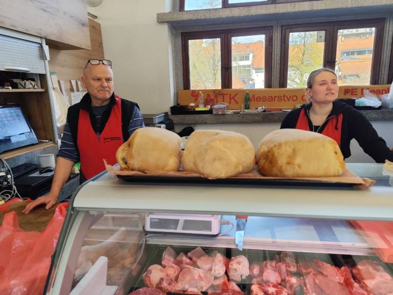 Vedno več kupcev posega tudi po že pečeni šunki v testu, za katero je treba odšteti med 18 in 20 evrov na kilogram. Številni so si svoj kos zagotovili že vnaprej – prodajalka pokaže zvezek s popisanimi naročili, kjer sproti črta imena kupcev, ki so po šunko že prišli.