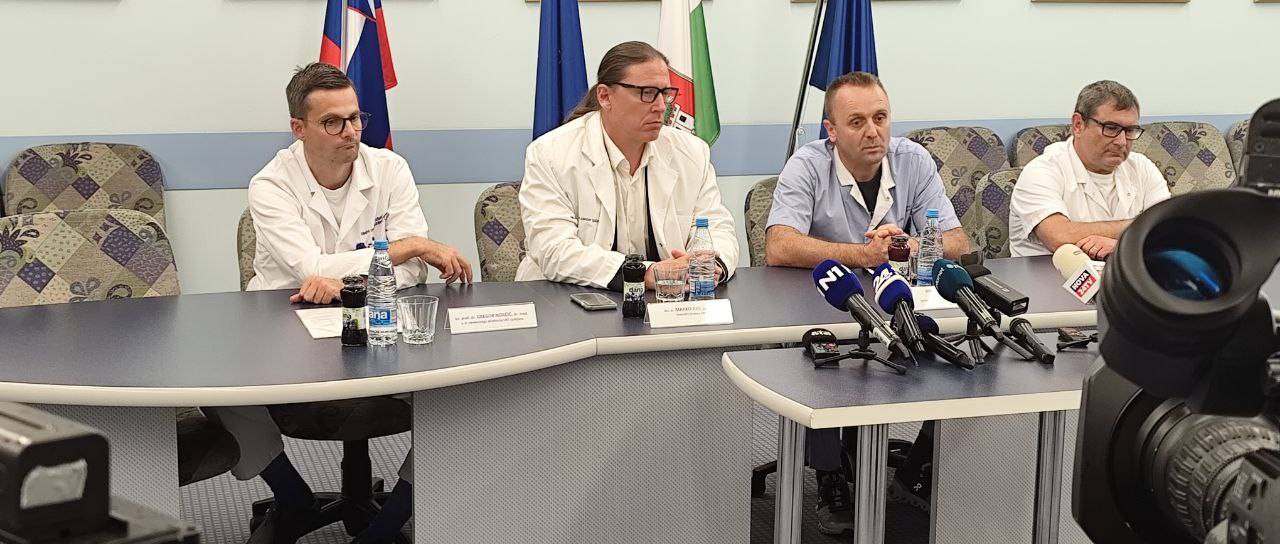 Na novinarski konferenci so nastopili generalni direktor Marko Jug, v. d. strokovnega direktorja Gregor Norčič in vodja internistične prve pomoči Hugon Možina.