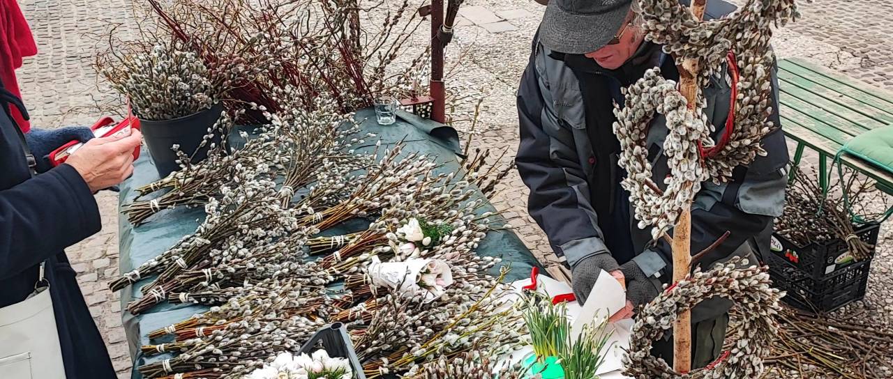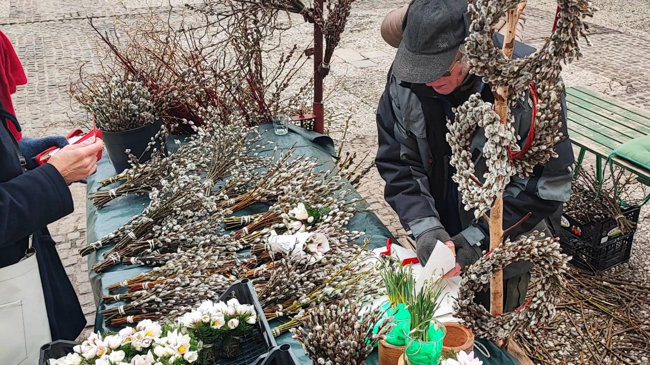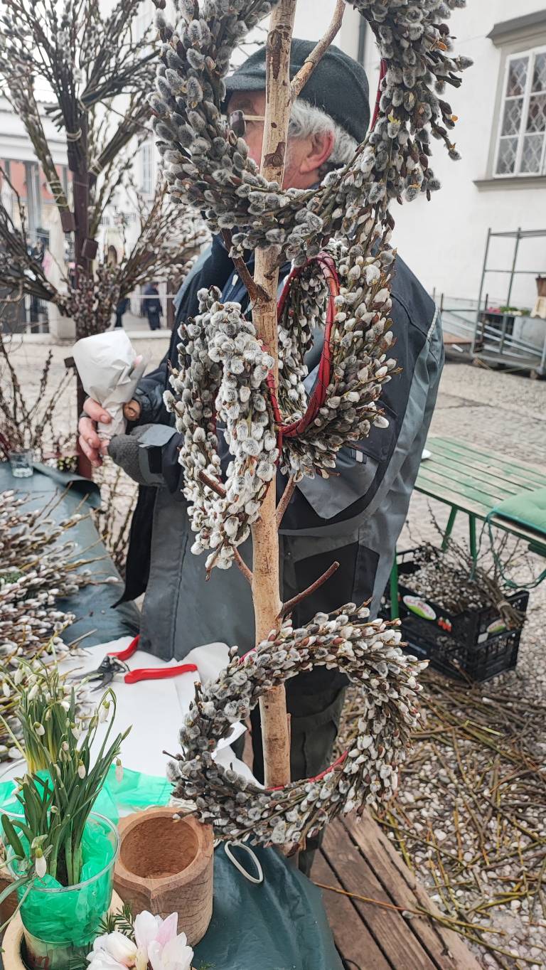 Enega izmed prodajalcev smo povprašali o venčkih iz mačic, ki so bili na voljo za 15 evrov. Pojasnil nam je, da so vsestranski – lahko krasijo mizo ali steno, s kakšnim dodatkom pa jih lahko uporabimo tudi kot osnovo za velikonočno dekoracijo.