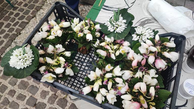 Manjši, a skrbno sestavljeni šopki, so se prodajali po ceni od tri do pet evrov, pogosto v kombinaciji z nežnimi vejicami resja, ki so jim dodajale barvni kontrast.