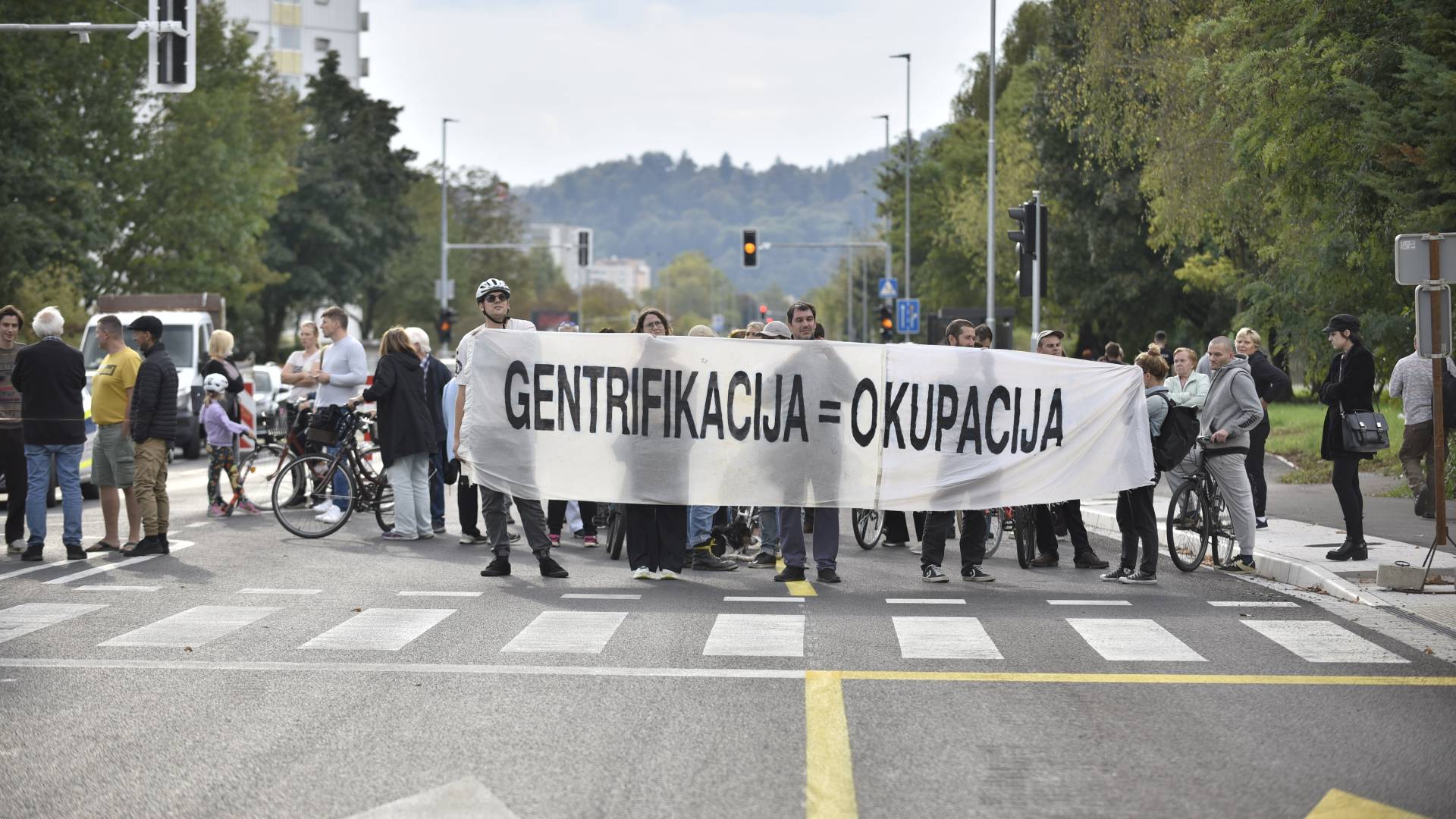 Z množičnim prečkanjem prehoda za pešce so opozorili, da prenove v njihovi soseski ne izboljšujejo pogojev življenja, temveč služijo predvsem tranzitnemu prometu.