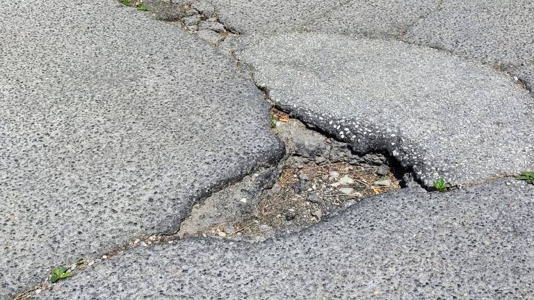 Po celotni površini so razpoke, večje in manjše vdrtine ter luknje, ki predstavljajo nevarnost predvsem za pešce, kolesarje in skiroiste.