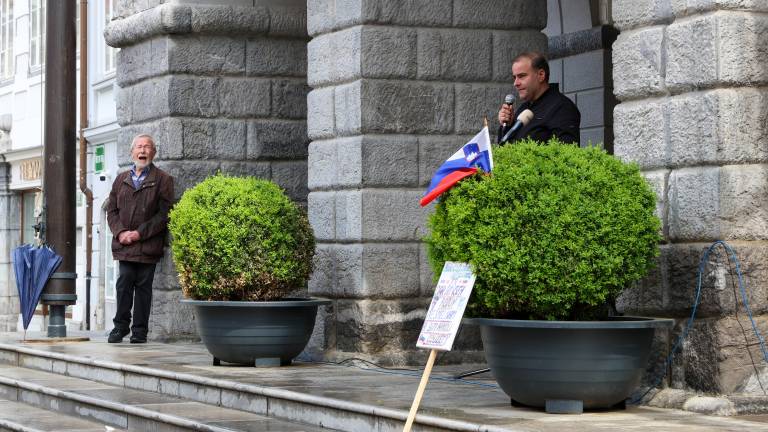 Pred sejo mestnega sveta Mestne občine Ljubljana je pred Magistratom potekal že jubilejni, 30. protest Aleša Primca zaradi kanala C0.