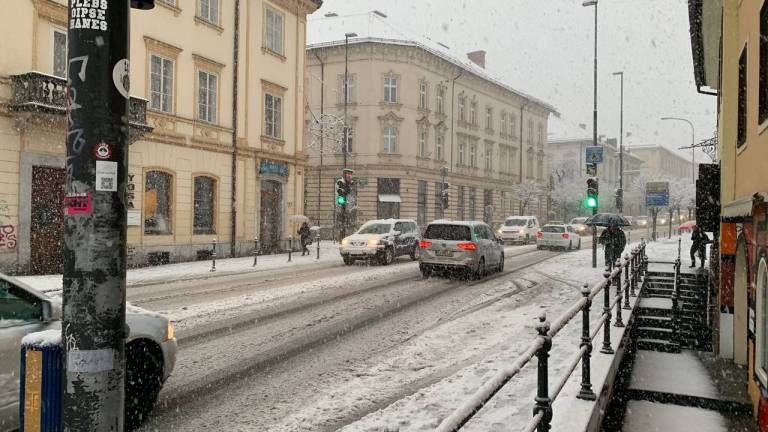 Močno sneženje se je od severovzhoda razširilo že nad skoraj celotno Slovenijo, dežuje le še na Primorskem.