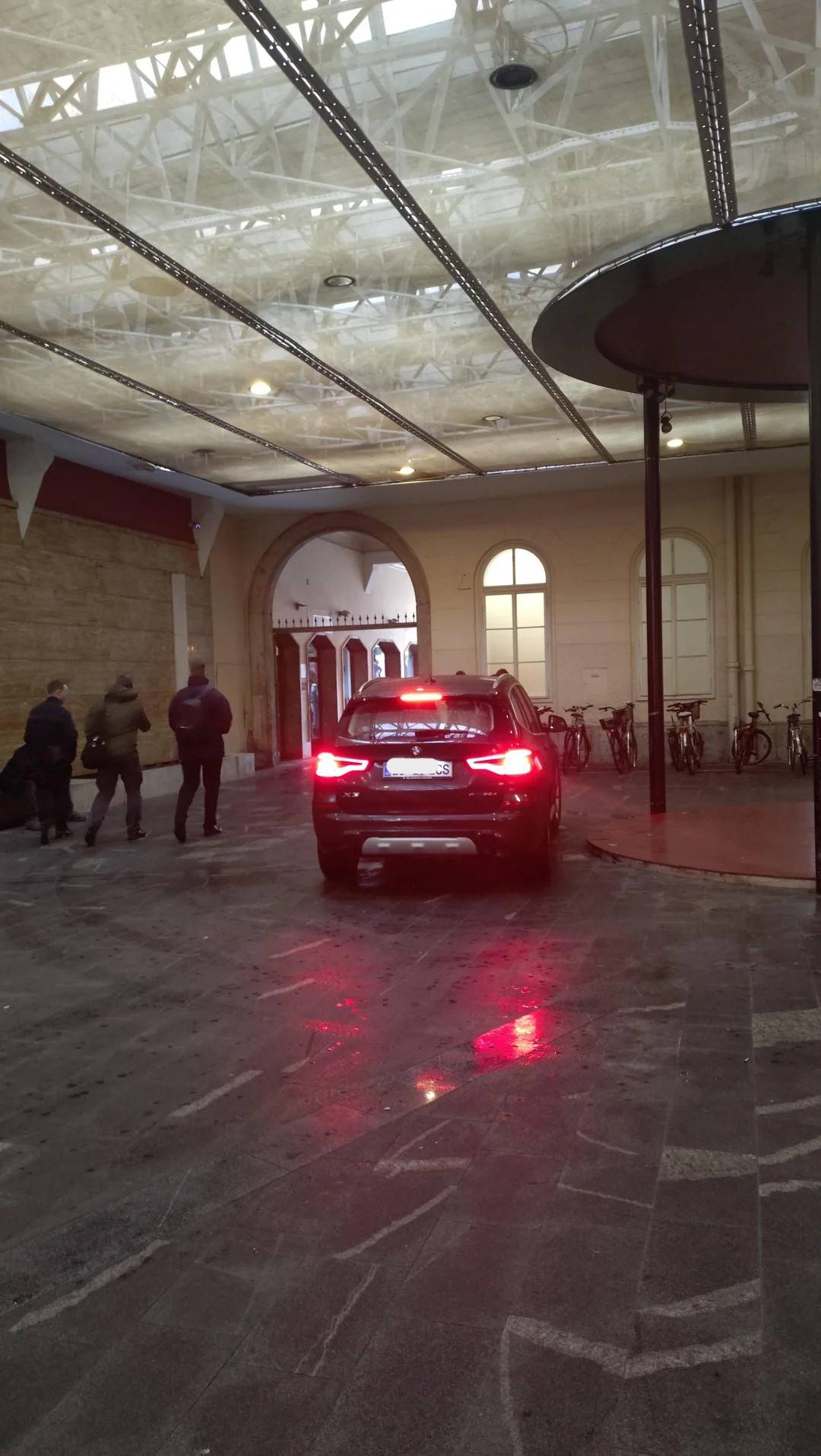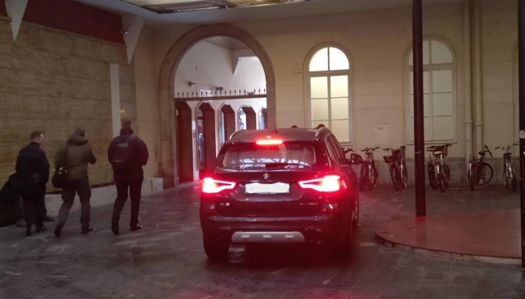 Šlo je torej za dostavo, vseeno pa so mimoidoči začudeno pogledovali, saj niso navajeni, da sredi starega atrija stoji parkiran avtomobil.