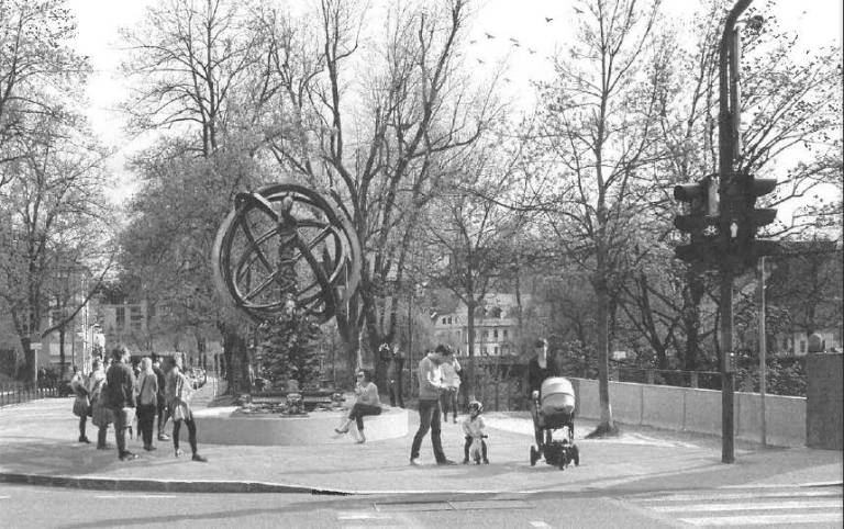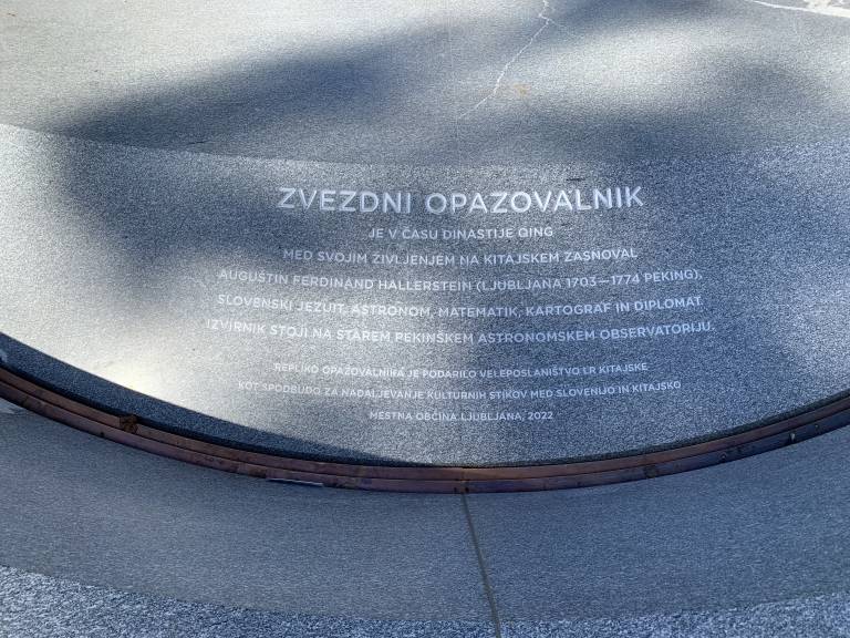 »Sporočamo, da je Mestna občina Ljubljana v dogovoru z Veleposlaništvom Republike Kitajske uredila trg in montirala podstavek za spomenik Ferdinandu Avguštinu Hallersteinu. Veleposlaništvo Republike Kitajske naj bi že v preteklem letu zagotovilo kopijo astronomskega opazovalnika, katerega original stoji na pekinškem observatoriju.