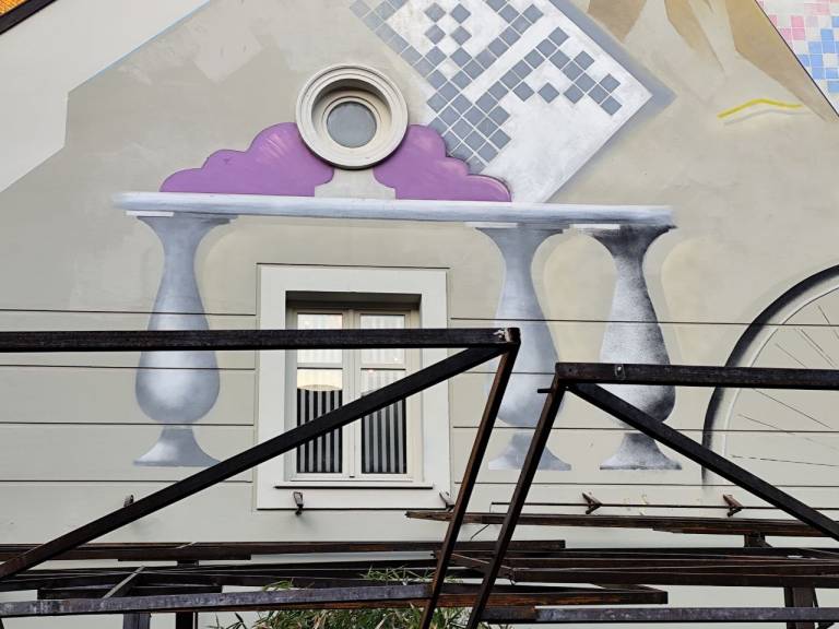 Svetla in optimistična poslikava stene je mimoidočim privabila nasmeh na obraz in spomin na čisto, belo Ljubljano.