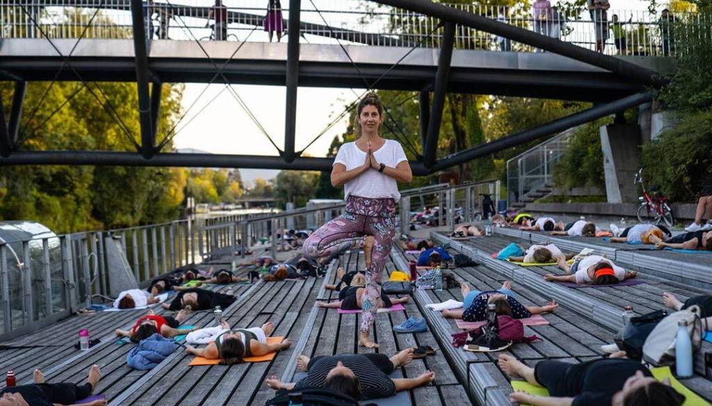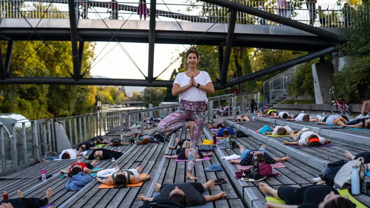 Ljubljančanka in spletna vplivnica Nina Gaspari, ki že štiri leta zapored organizira tudi večere joge v parku Tivoli, v sodelovanju z Mestno občino organizirala večerno jogo.