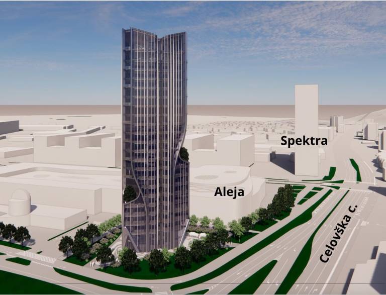 Umeščena bo na območje ob Celovški cesti, tik ob nakupovalnem središču Aleja, trenutno najvišjih stolpnicah Spektra – te merijo 85 metrov - in nastajajočem Poslovnem centru Šiška.