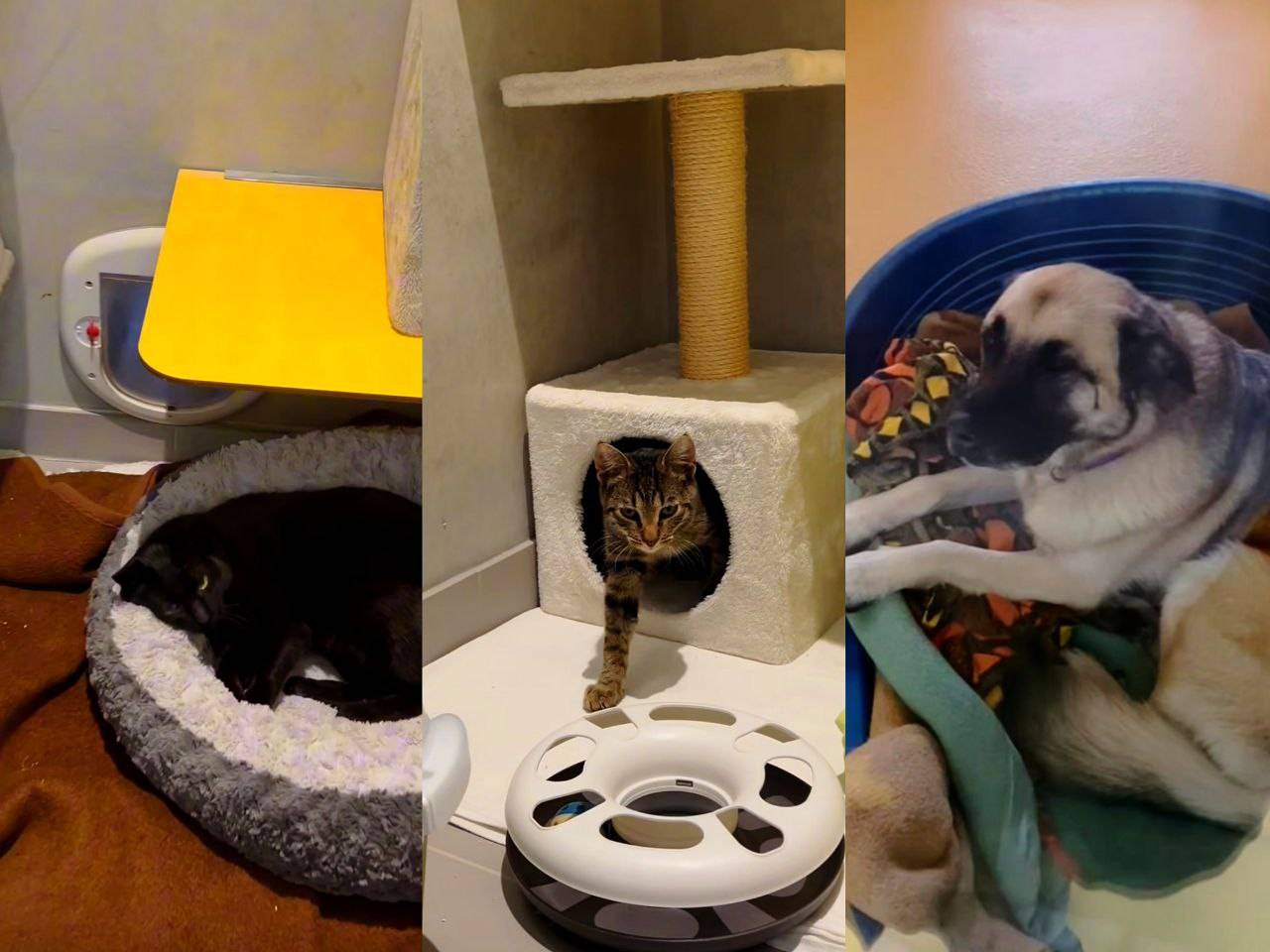 Na posnetku vidimo mačke, ki se lenobno pretegujejo in s polzaprtimi očmi čakajo na božanje, ter pse, ki ob prihodu skrbnikov veselo mahajo z repki in se jim nastavljajo za crkljanje.