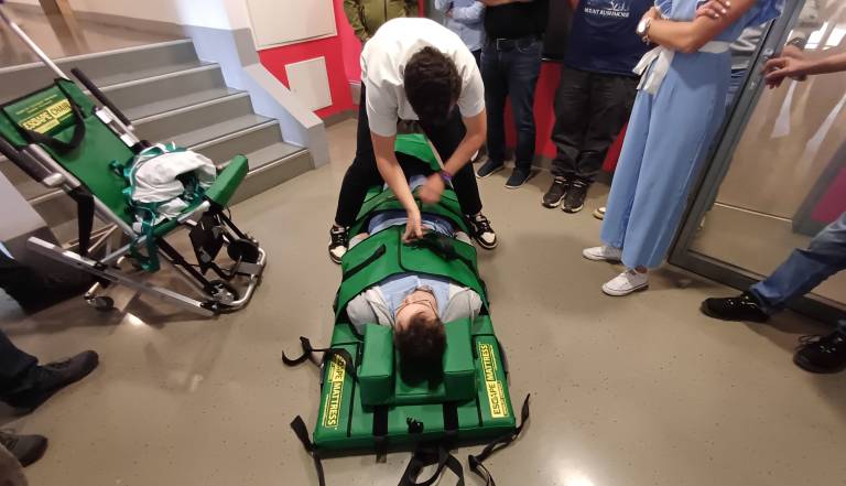 Udeleženci usposabljanja so se zato lahko tudi sami preizkusili v rokovanju z evakuacijsko opremo, kar je pripomoglo k boljšemu razumevanju izzivov in potreb v realnih situacijah.