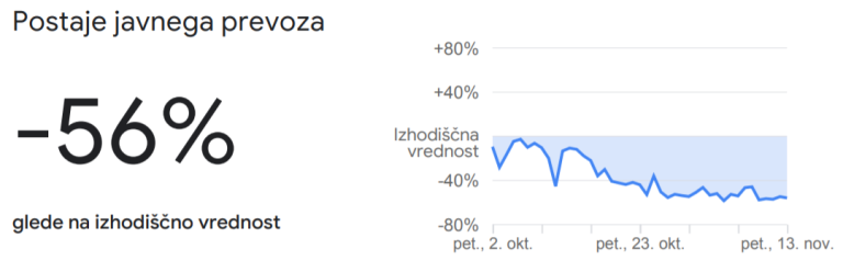 Nasprotno seveda Ljubljančani preživijo več časa doma. Glede na izhodiščno vrednost iz januarja, preživijo prebivalci Ljubljane 19 odstotkov več časa na domačem naslovu.