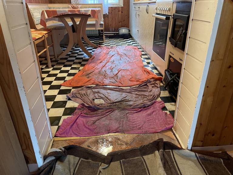 Zemlja je zasipala okna in ogrozila njeno hišo, voda pa je poplavila notranje prostore zato so Terezijo in moža nemudoma evakuirali in namestili pri sosedih.