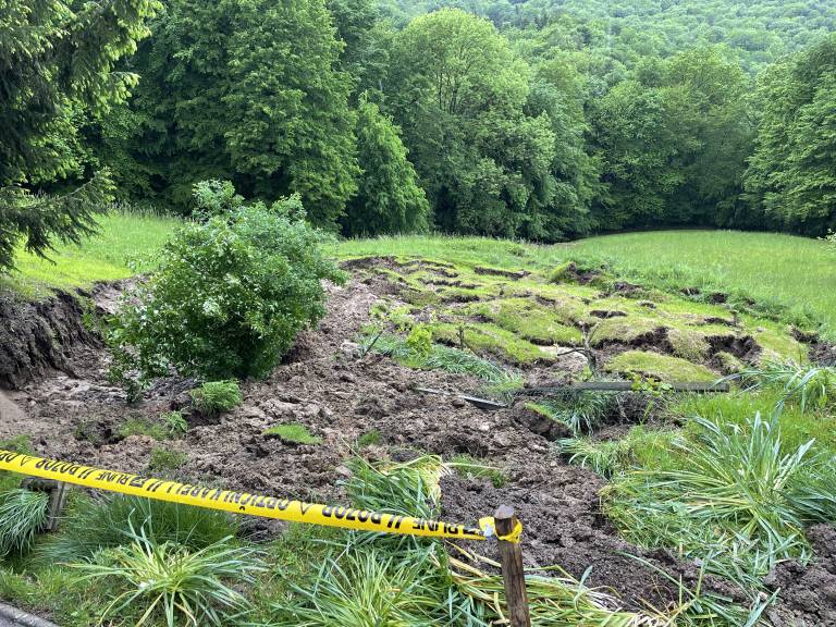 Tereziji Pitner iz Selnice ob Muri se je včeraj zvečer zemeljski plaz zrušil tik ob hiši.