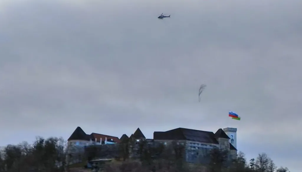 Danes potekajo helikopterski preleti nad Grajskim hribom v Ljubljani. Helikopterji nameščajo zaščitne mreže v sklopu projekta za večjo varnost ljudi in objektov pod pobočjem.