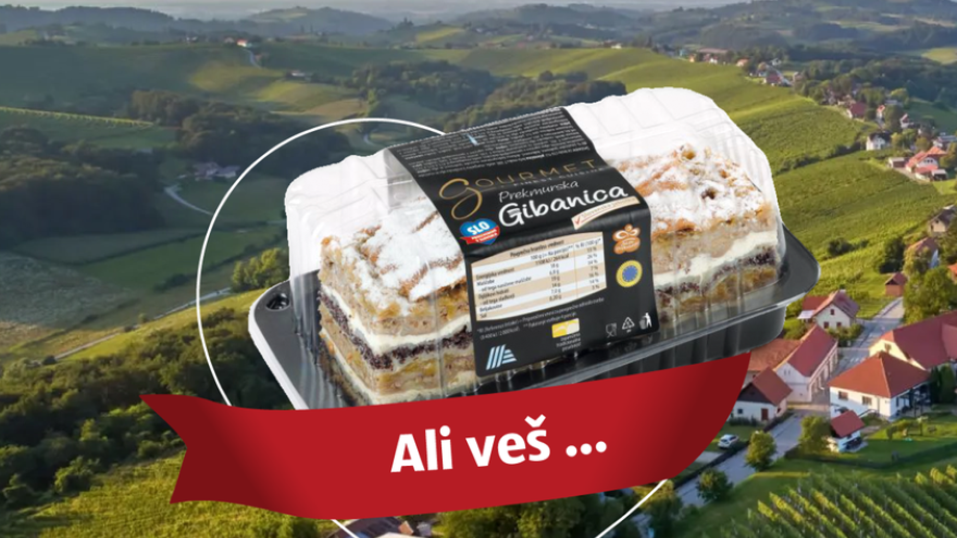 Zraven zapisa so objavili tudi sliko, na kateri je v ozadju naselje, na njem pa prekmurska gibanica iz trgovine Hofer.