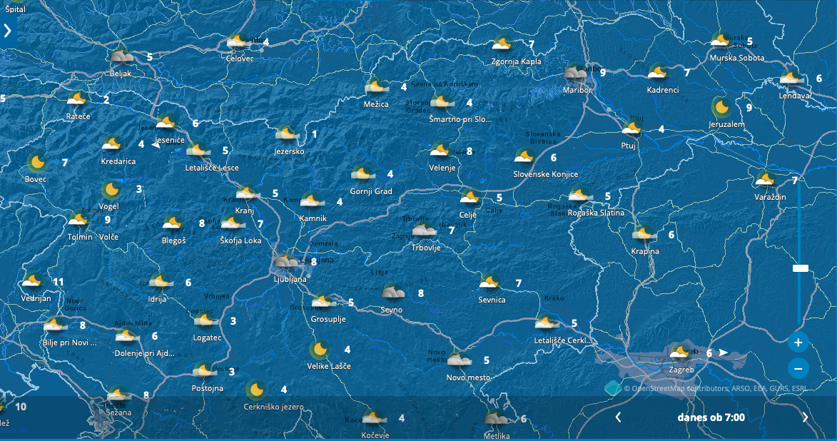 Jutri bo povečini sončno z jutranjo meglo po nekaterih nižinah. Popoldne se bo v hribovitem svetu zahodne Slovenije oblačnost povečala, zvečer bodo na severozahodu padle prve dežne kaplje. Najnižje jutranje temperature bodo od 2 do 10, ob morju okoli 11, najvišje dnevne od 17 do 21 stopinj Celzija, napovedujejo državni meteorologi.