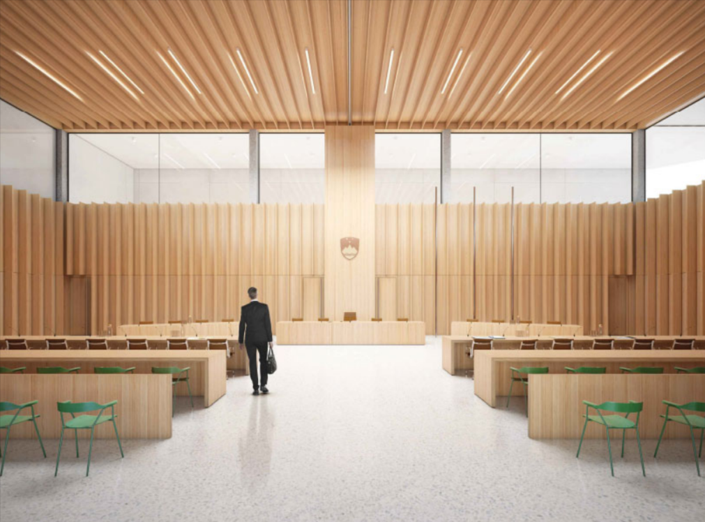 Imela bo devet sodnih dvoran, ki si bodo sledile v nadstropjih ena nad drugo. Objekt bo imel tudi podzemna parkirišča in zaklonišče.