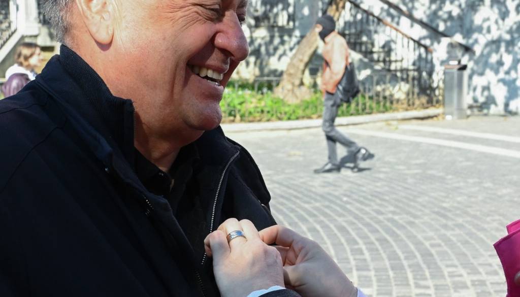 Med obiskom stojnice se je župan nasmejan fotografiral z predstavnicama Europa Donne.