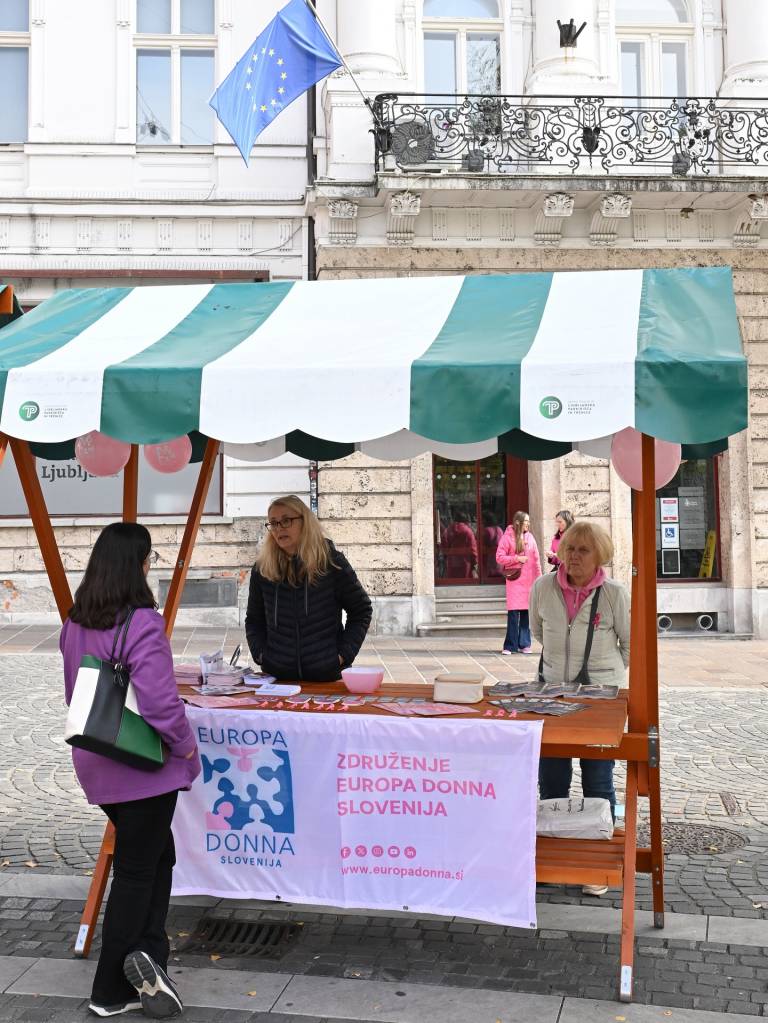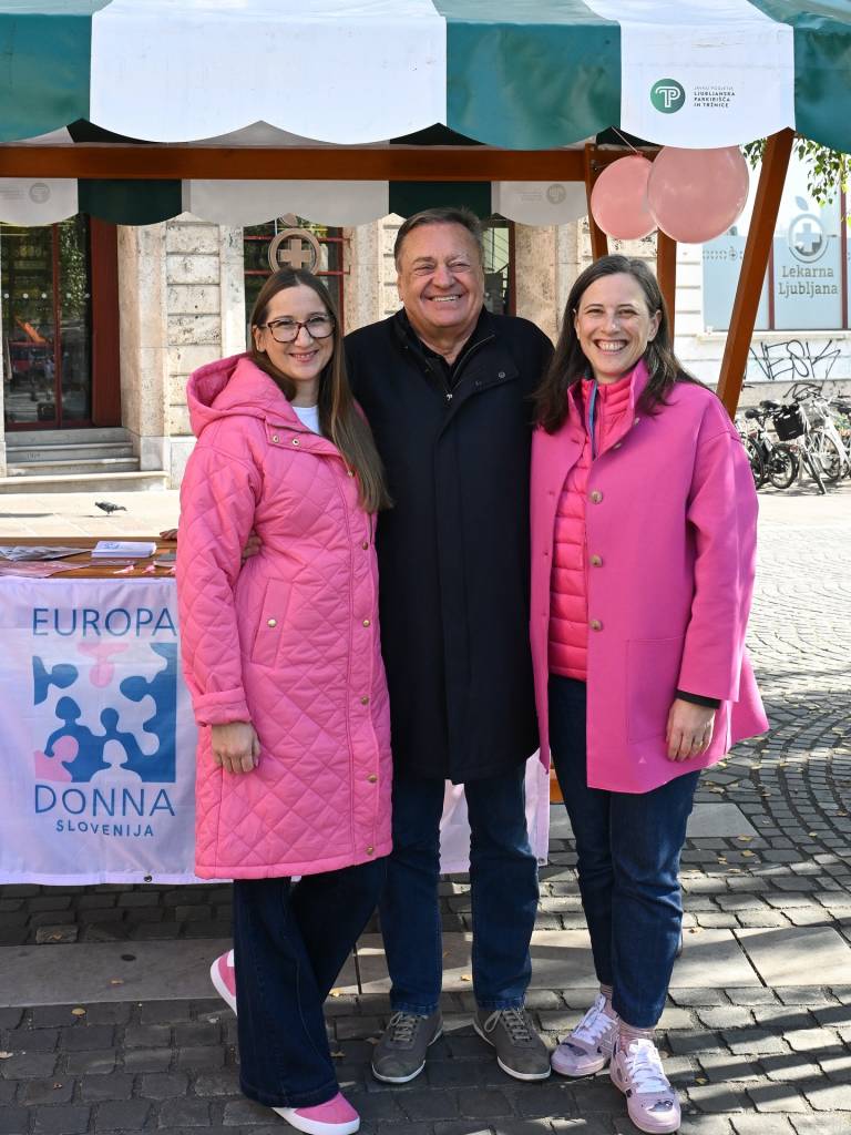 Župan Janković je ob stojnici na Prešernovem trgu izrazil podporo ozaveščanju o raku dojk in skrbi za zdravje žensk.