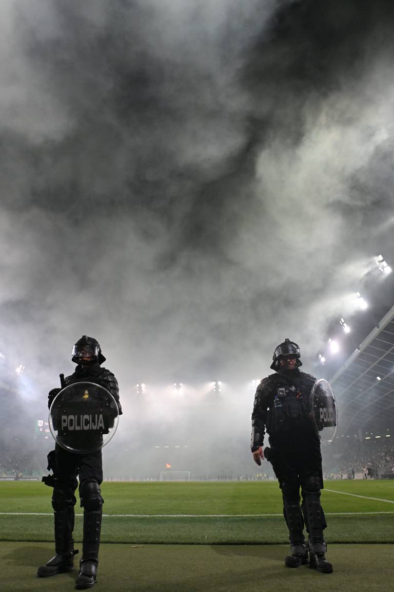 V izgredih hrvaških navijačev, ki so na vratarja in navijače na zahodni tribuni metali bakle, stole in še kaj, je bilo poškodovanih kar osem policistov. Za povrh pa je inšpektor ugotovil, da je na tekmi manjkala kar tretjina varnostnikov.