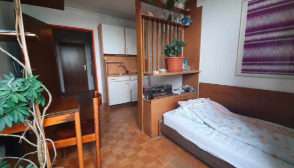 Za skoraj 20 kvadratov v Šiški morate odšteti 63 tisoč evrov. Garsonjero, zgrajeno leta 1983 v 12. nadstropju, lastnik prodaja "z najemnikom ali prazno, zahodna lega".