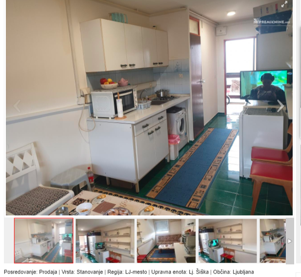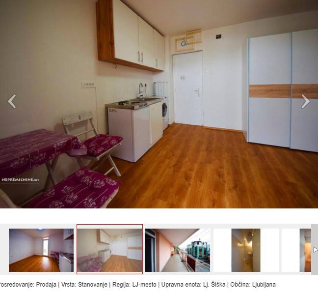 Sicer pa je najcenejše ljubljansko stanovanje, ki se trenutno prodaja, 12 kvadratnih metrov v Šiški. V zakup morate sicer vzeti, da si boste WC in kopalnico delili še z drugimi lastniki. Agencija, ki prodaja omenjeno stanovanje, ga za nakup priporoča z naslednjimi argumenti: "V objektu zgrajenem leta 1953 na Ruski ulici, tik ob pivovarni Union, prodamo leta 2020 kompletno adaptirano in delno opremljeno sobo, v velikosti 12,32 kvadratnih metrov,, s souporabo kopalnice in wc-ja, ter velike delno nadkrite terase. Soba se nahaja v 5. od 5. nadstropij in se prodaja delno opremljeno (kuhinja, pralni stroj, jedilnica, garderobna omara…. ). Stanovanju pripada še garderobna omara v skupnem hodniku in uporaba skupne kolesarnice. Objekt v katerem se nahaja soba ima novejšo fasado in obnovljeno streho. Velika dodana vrednost je direkten dostop do velike terase, ki ponuja veliko možnosti preživljanja časa zunaj, počitek, druženje s prijatelji kot tudi prostor za sušenje perila. Izredna priložnost za nakup kot investicijo."